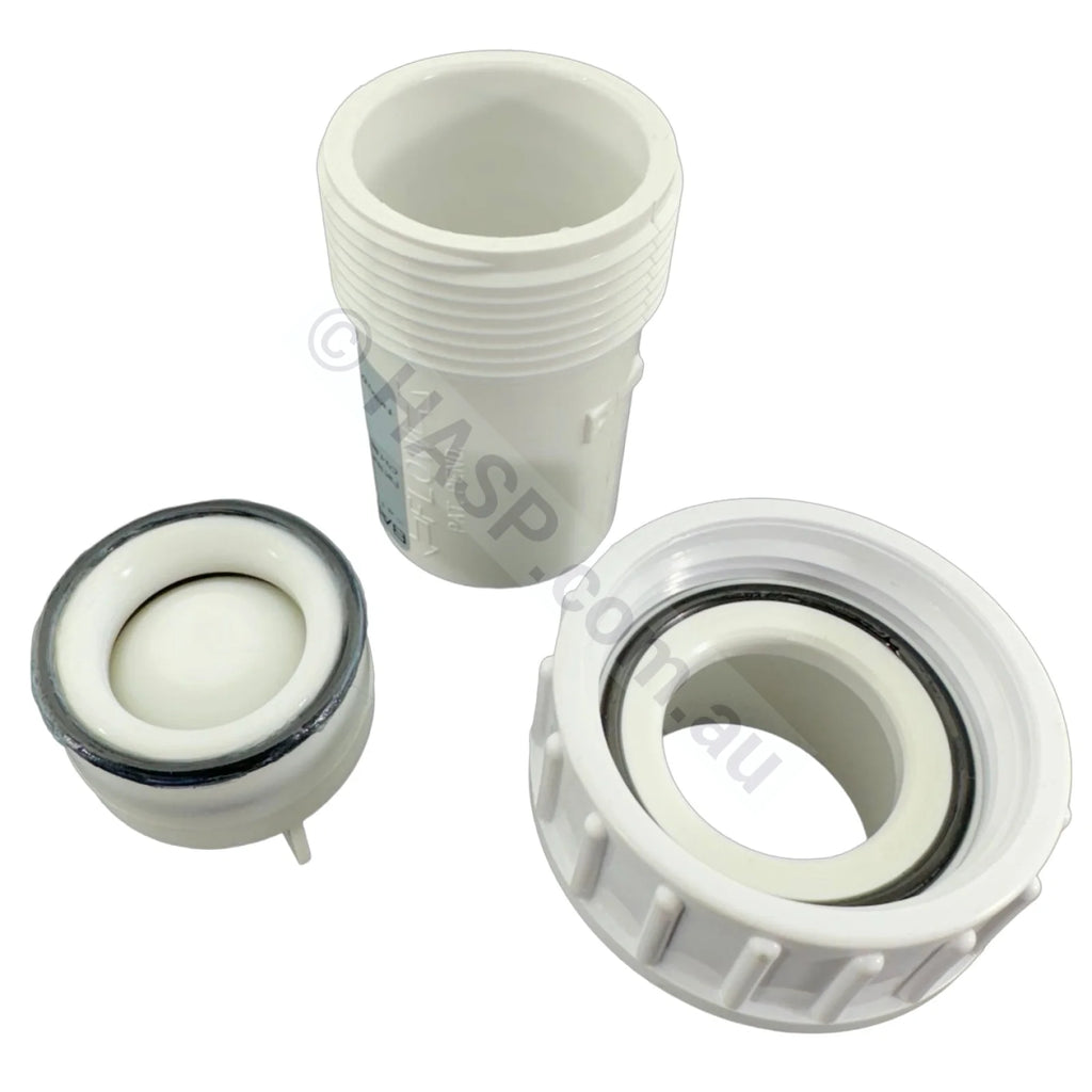 Balboa 40mm inline Air Check Valve. Unionized with 1/4lb spring and 40mm pipe fitting. Used in the plumbing for a blower. Replaces older GG Industries 42150 and others. Old valve may need to be cut out and replaced with this one.