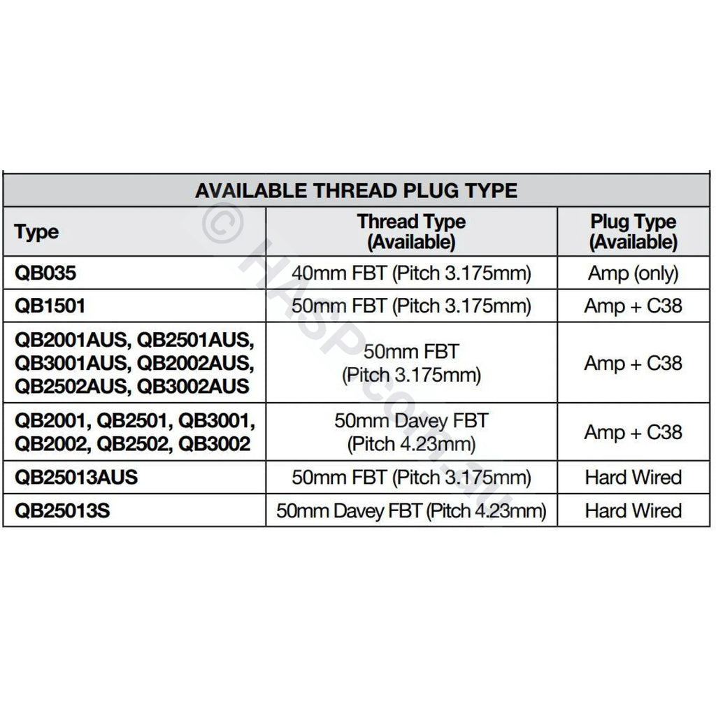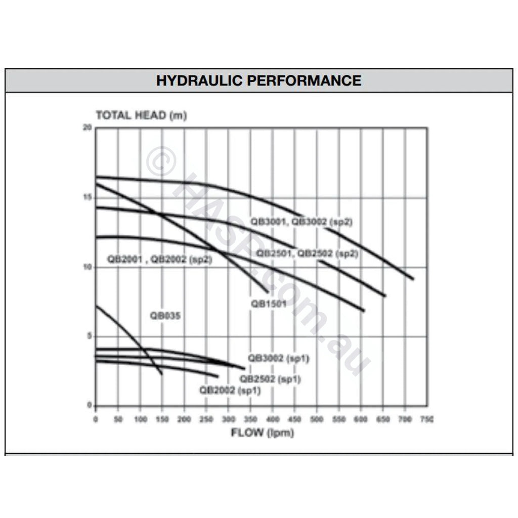 Davey Spa Power QB035 0.25kW 0.3HP Spa Circulation & Filtration Pumps. 250W or 1/3HP. Comes complete with 40mm unions and Overmoulded AMP lead. Wet-end Head can be rotated to suit various installations (eg: side-discharge). Common on many spas including Sapphire, Heritage, Maax, Monarch and many others.