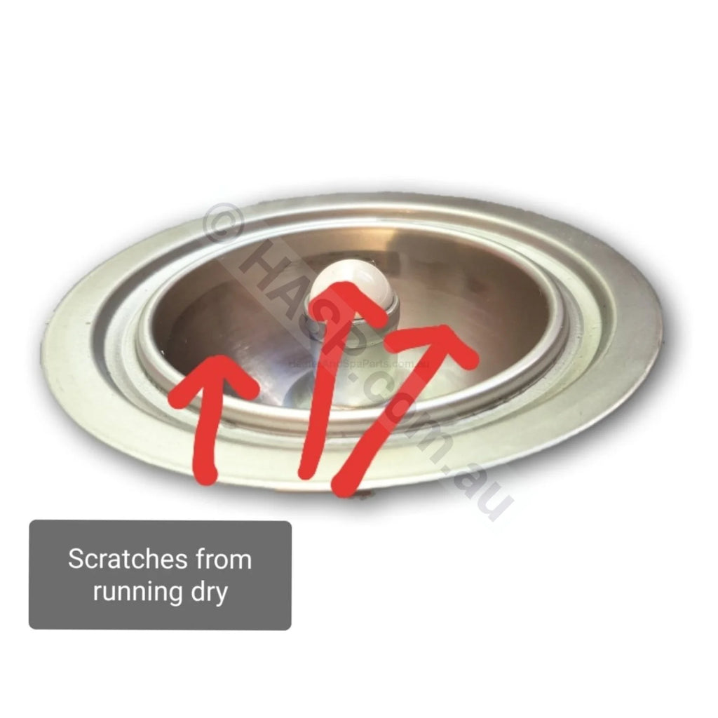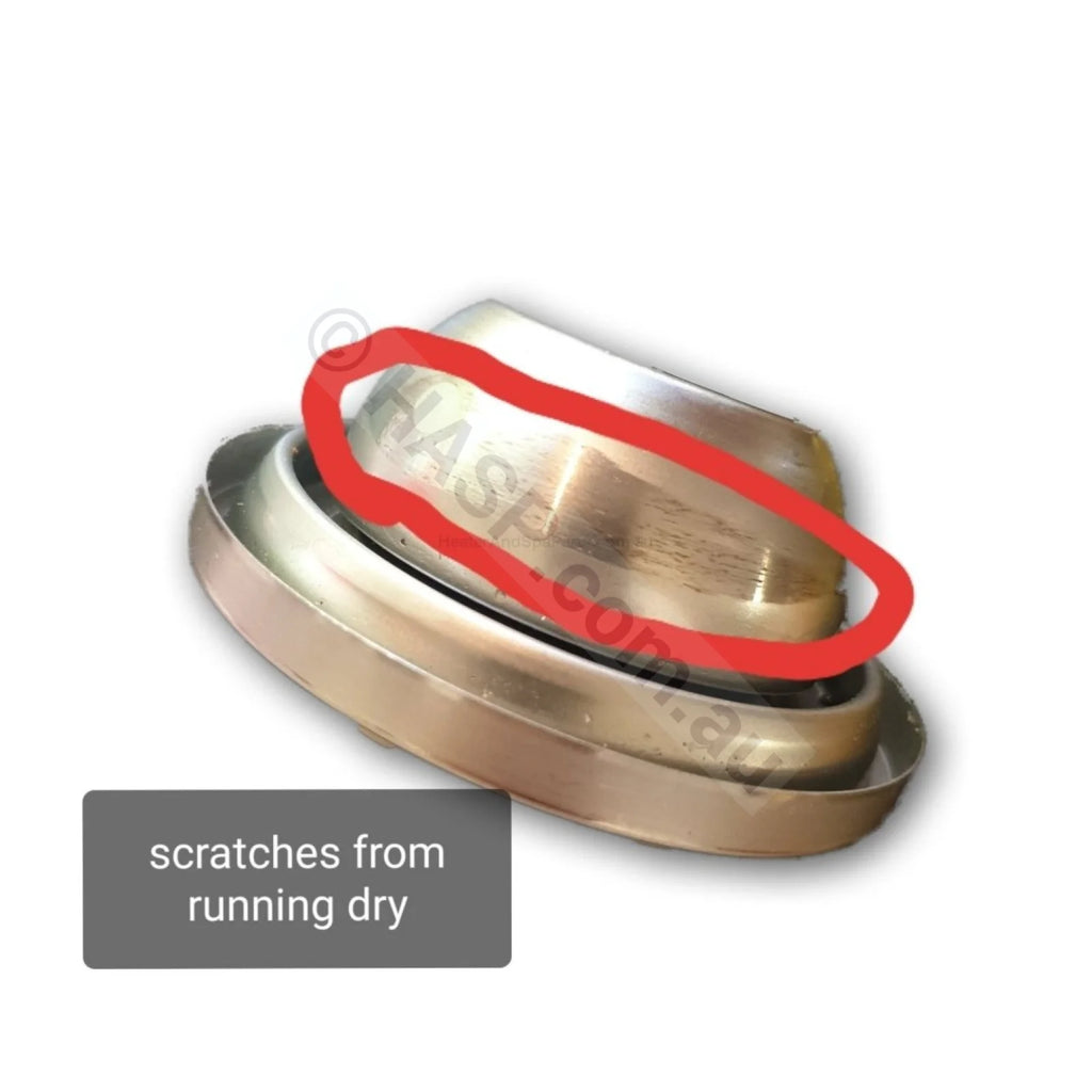 - See images below for evidence of scratches caused by running dry. Ensure on installation, and after each refill of the spa, that the circulation pump is primed and correct water flow is observed. An air-locked pump will fail due to dry running which is not covered by warranty and may result in a new pump being required.