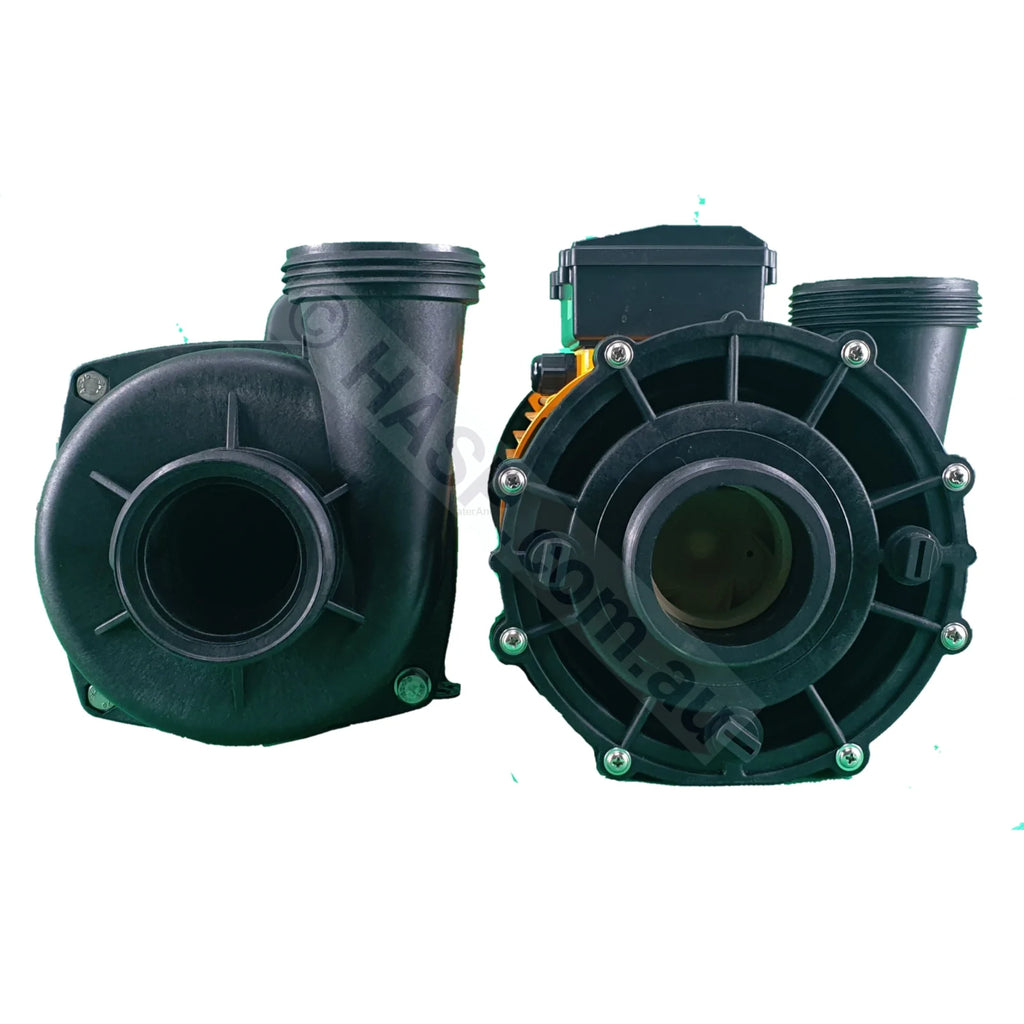 See photos for comparison of old types to the new types. Note that Spa-Quip used to use "Nominal" Horsepower ratings, so the 'Named' HP was not accurate at all. Pumps labelled 3HP might actually only be 2HP motors, and so on.