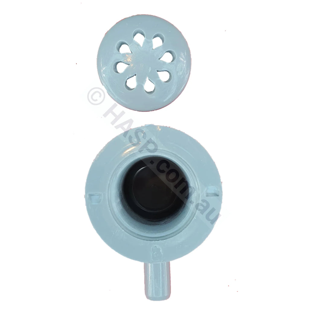 30mm Hole x 38mm Diameter cap. Air Injector for Air Blowers. One of the most common air injectors used in spas made by Spa Industries. Note: Similar to this air injector but is slightly different.