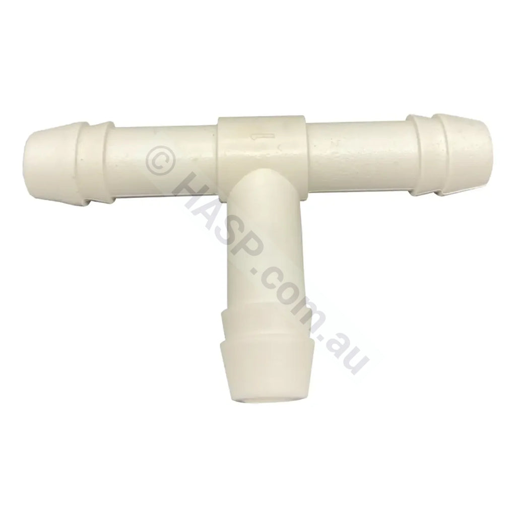 Air Tee 9-10 mm – allows simple joining for 10mm or 3/8" air venturi tube. Use PVC glue on barb to join. Old tube can be gently heated if stiff or brittle. No need for hose clamps. Often used on the venturi air line for spa jets.