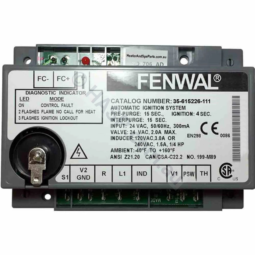 Fenwal Ignition Module for all JX series Wall Mount Gas Heaters from Hurlcon / Astralpool. Suits all JX130 & JX 160 gas heaters. Also suits some Hendy Boilers. Part number 9 in Diagram.