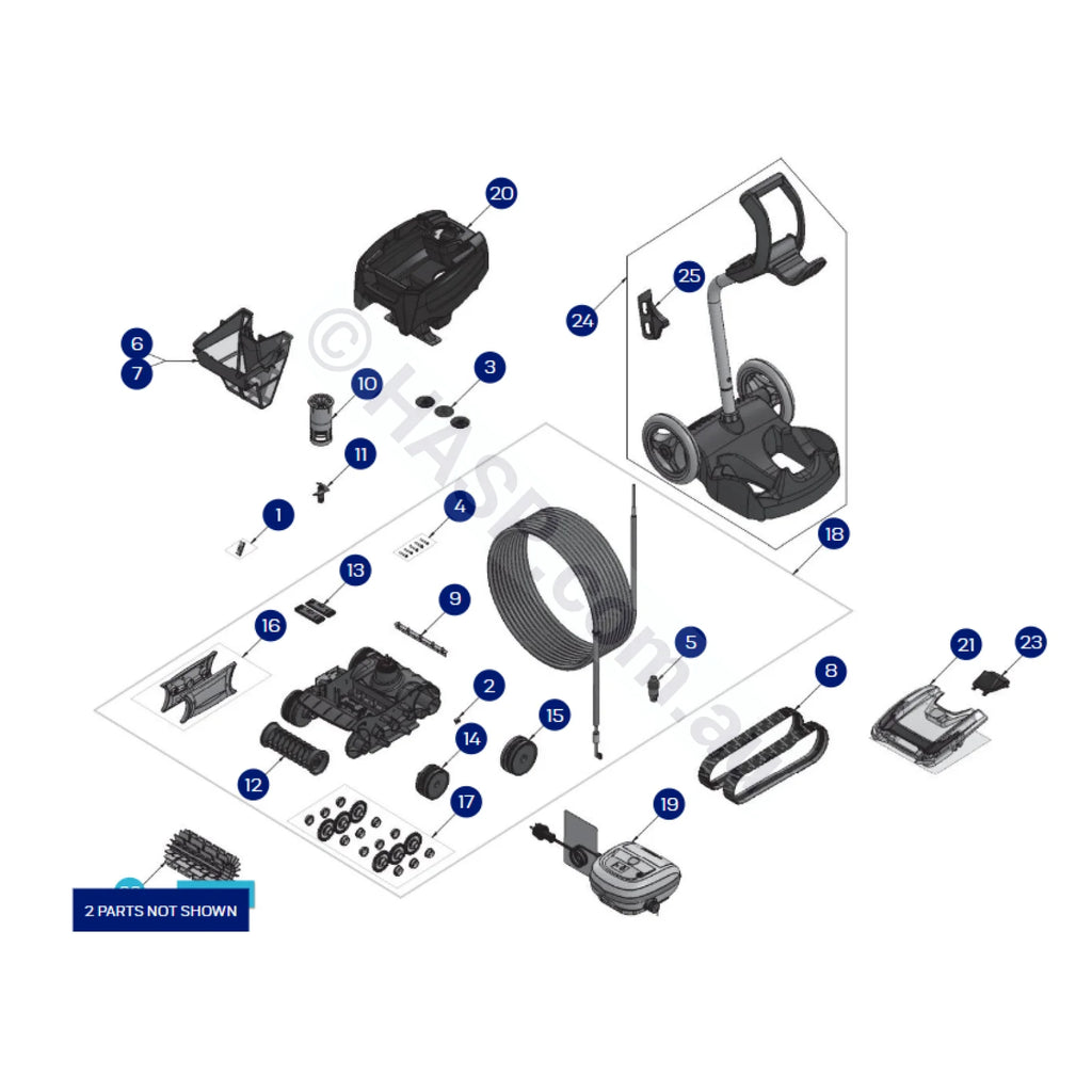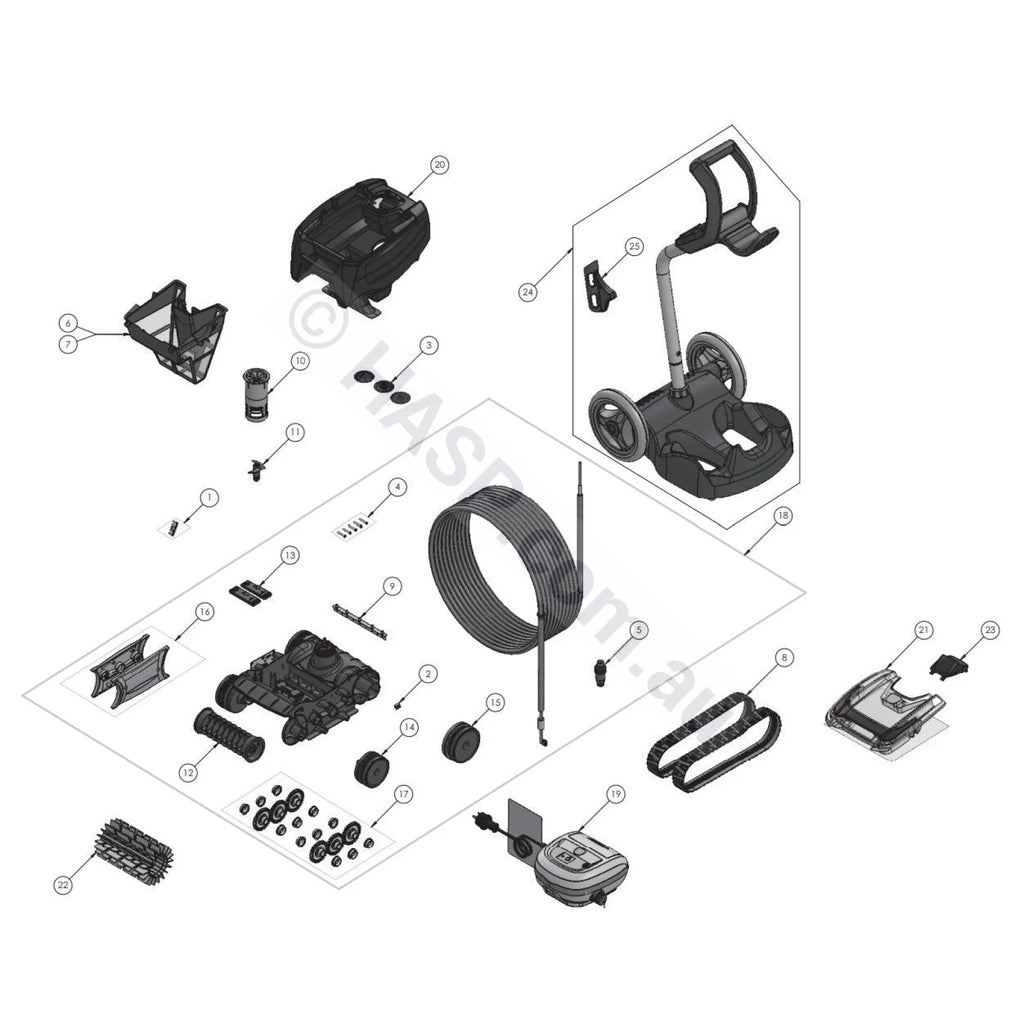 Astralpool TX 35 Robotic Cleaner Spare Parts. May also suit Baracuda EP34 / EP35 sold via Bunnings. Choose part number from diagram.