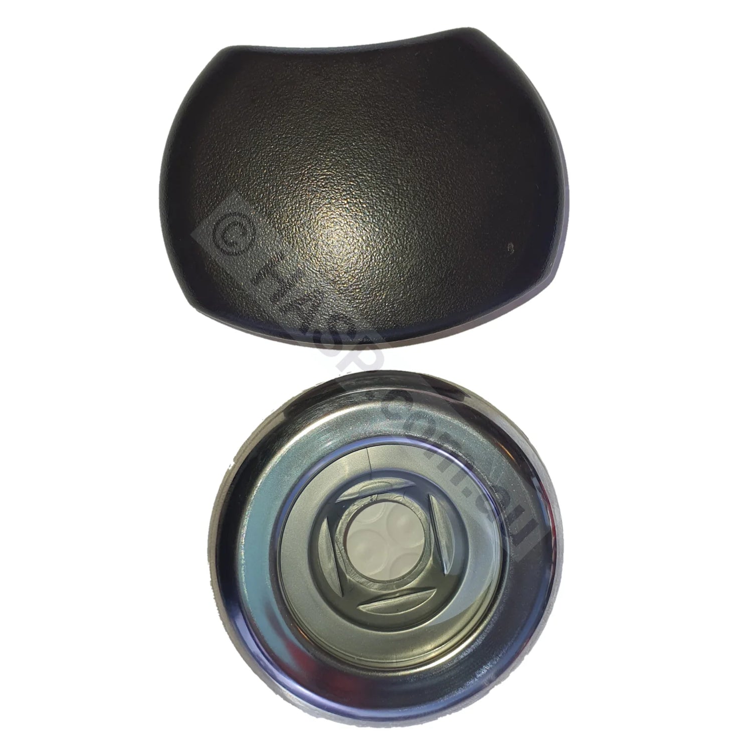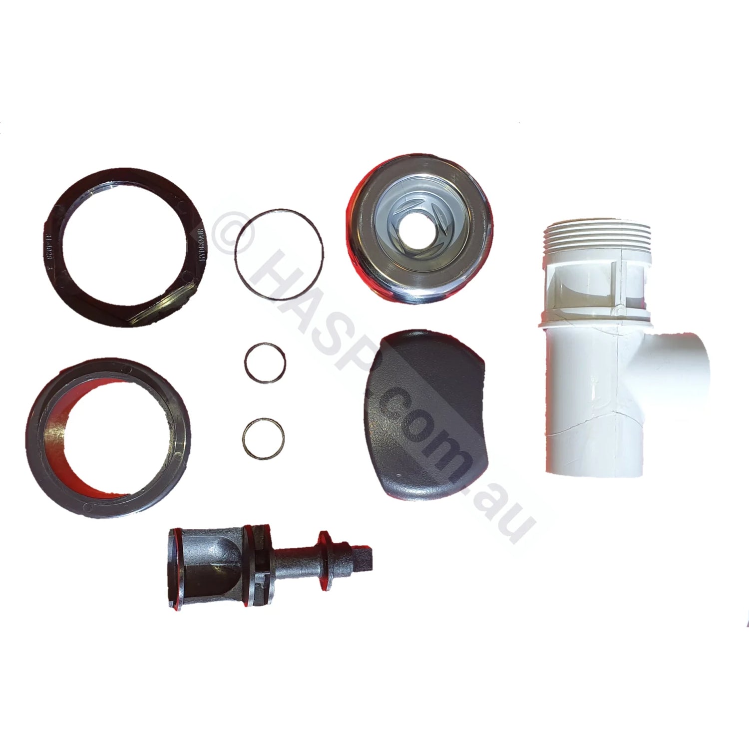Balboa 25mm 2-way On/Off Crescent valve usually used for Neck Jets or Waterfalls. Stainless steel cap with dark grey handle. Similar, but smaller than this larger 50mm Valve. Kit comes with Valve body, Handle, Cap, Rotor, O-rings, etc. Individual parts are not available.