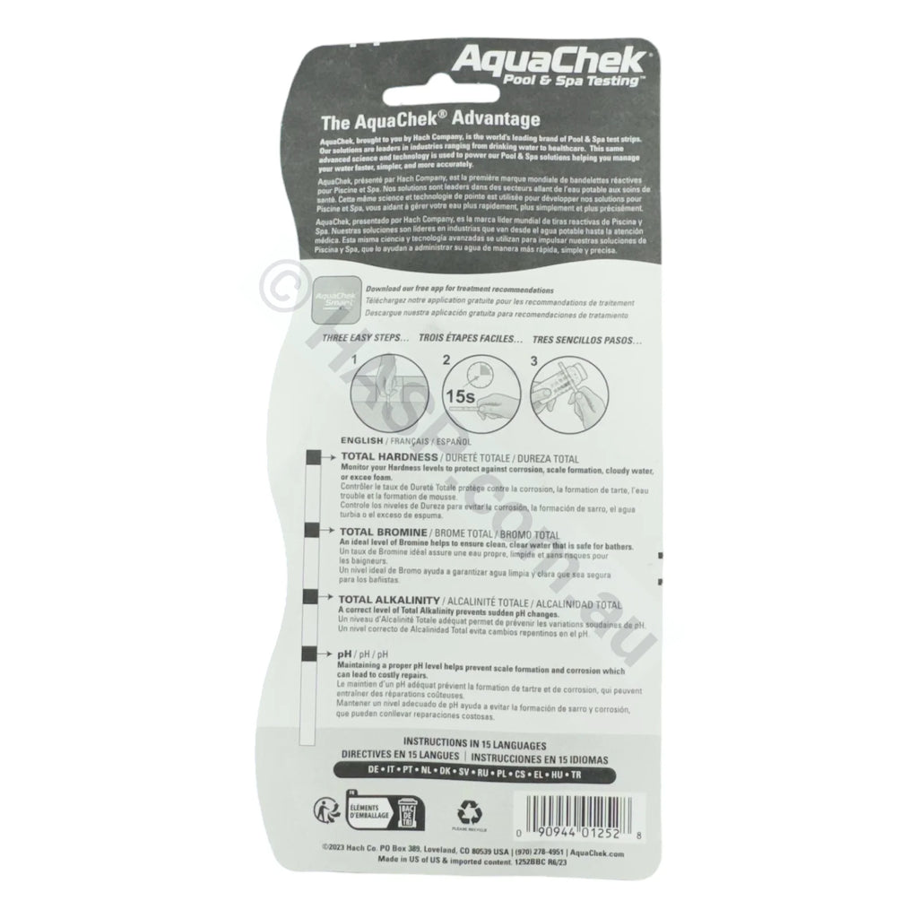 Aquacheck® Tests Strips Chlorine 4 way is quick & easy to use giving a result in 15 seconds. Tests for Total (Calcium) Hardness, Total Bromine, Total Alkalinity, and pH.