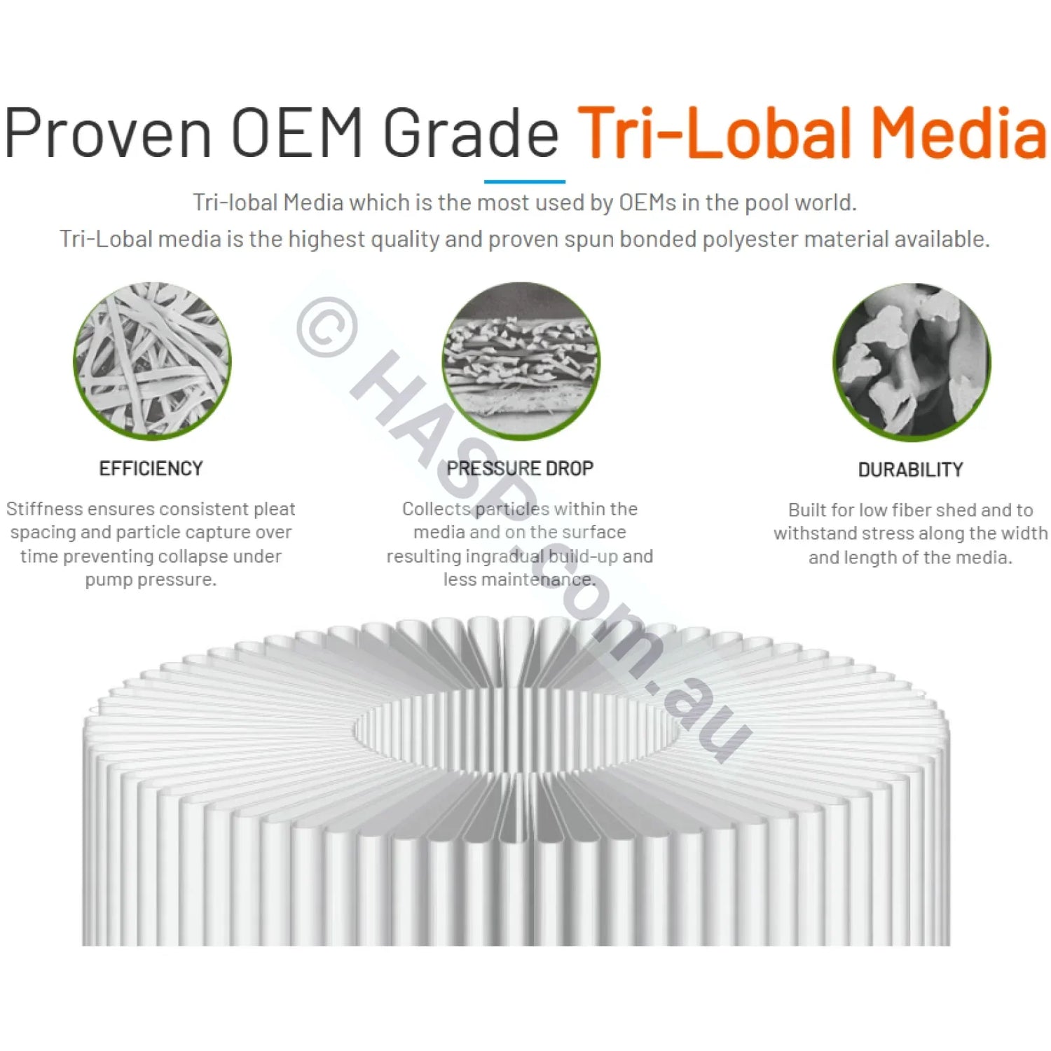 Heater & Spa Parts only supplies premium-grade cartridge filters. Unless otherwise stated, our filters are Magnum® or Darlly® branded, made using USA-made Reemay®, Darlly®, Pleatco® filter media or equivalent. These two companies are among the biggest OEM suppliers to major spa and pool manufacturers, including Astralpool and many others.