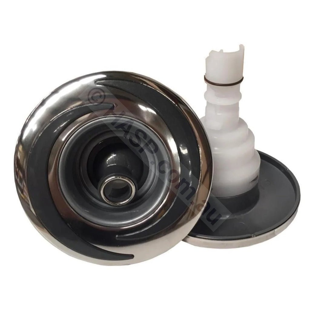 Sapphire Spas / CMP 116mm Jet - Common on Sapphire Spas. SQR 4.5" Halo Face Roto. Face diameter of 116mm. Face is stainless steel with graphite grey inserts and has a spinning nozzle.