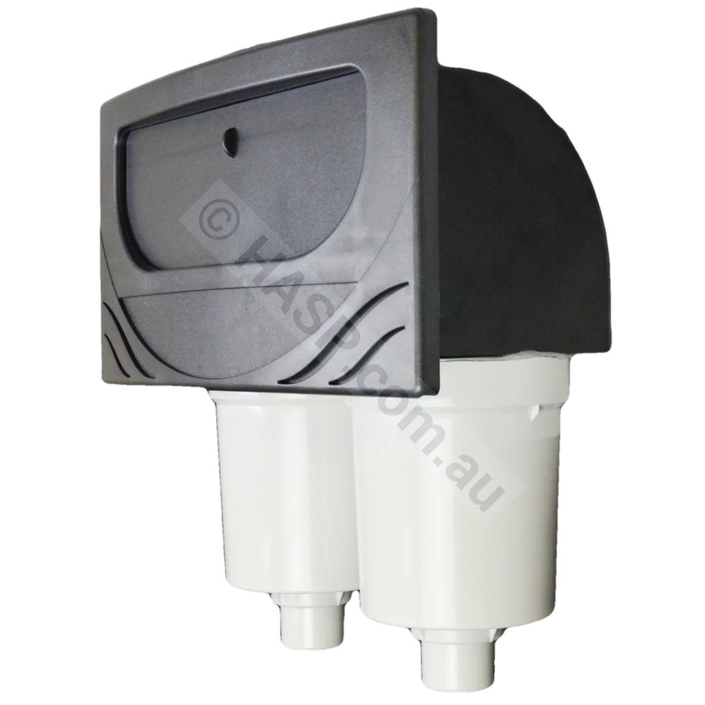 Front access CMP 100sqft filter assembly. Comes with box, basket, mounting bracket, screws and face/weir door. Uses these filters.