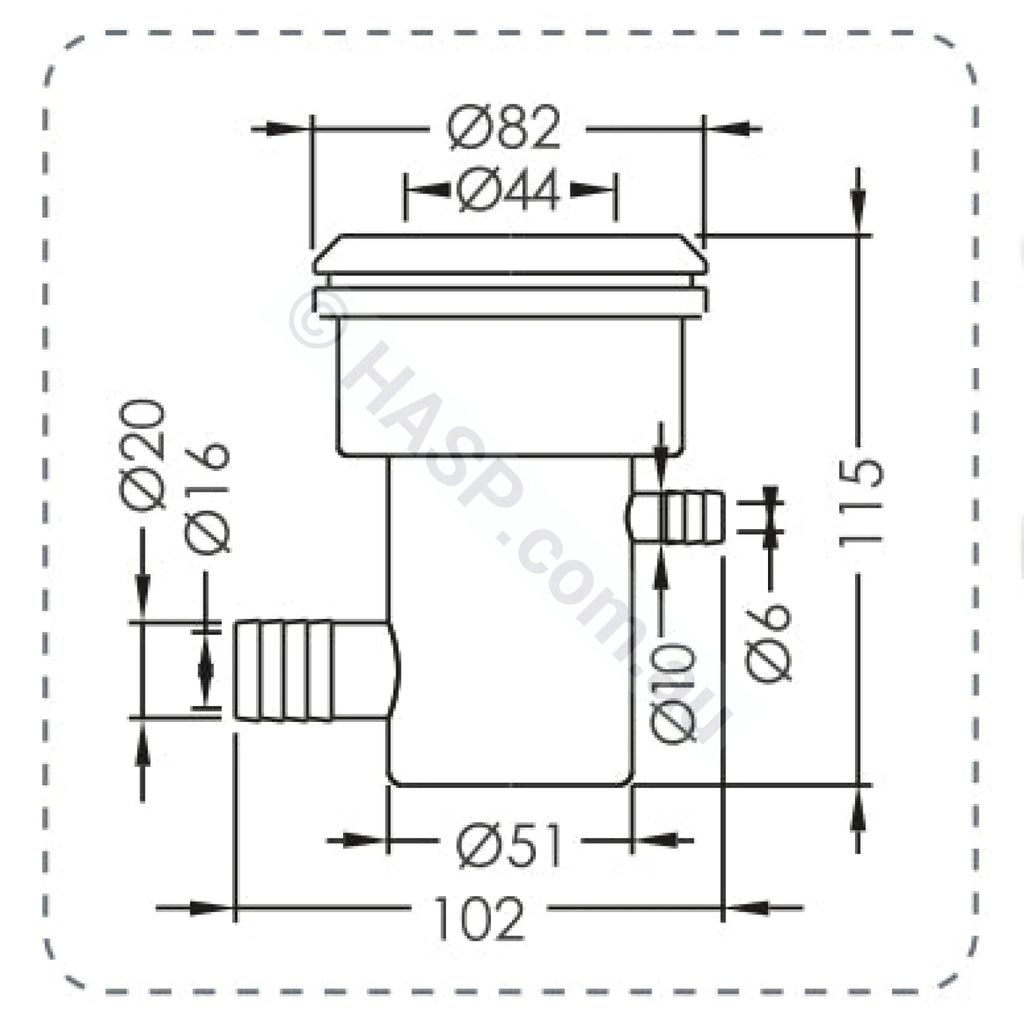 Davey / Emaux Jet Body. 19mm water barb and 9mm air barb. Use a high-quality pool-grade silicone sealant.