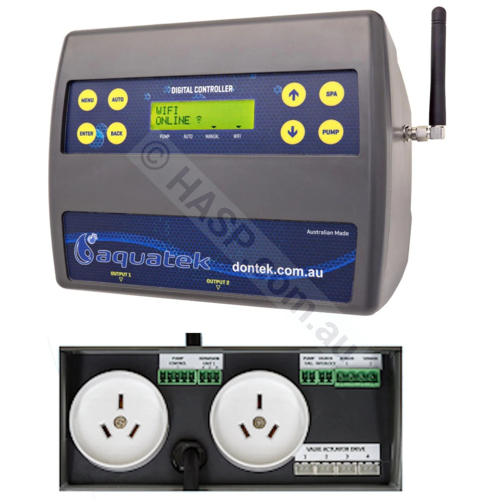 WiFi Remote-controlled pool and spa controllers with heater control! The Dontek Aquatek, Henden Control, Theralux Pool+, Aquamate X, Waterco Pooltek and similar are exactly the same units, differing only by the front label. They are some of the simplest pool and spa controllers available, with inbuilt WiFi for easy connectivity. The modular design supports up to two expansion modules, making the system straightforward to install and use. The Master Controller is fitted first, and additional Slave Controllers can be added to handle more equipment.