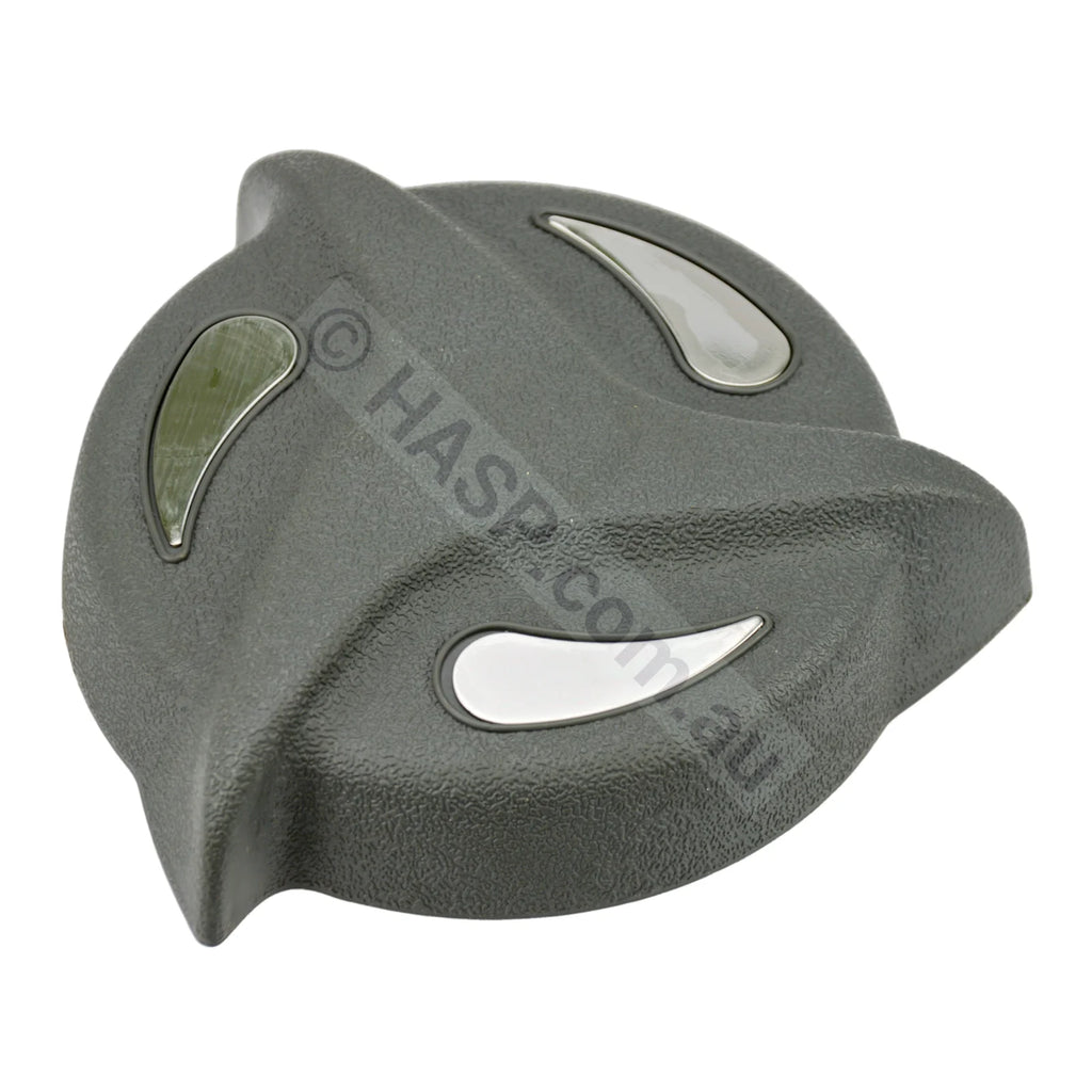 Edgetec 50mm Diverter Valve Cap Only. Sea Breeze tri star shape. Charcoal Grey w/ Stainless steel inserts. Has a Tristar shape. Mostly found on Maax spas.
