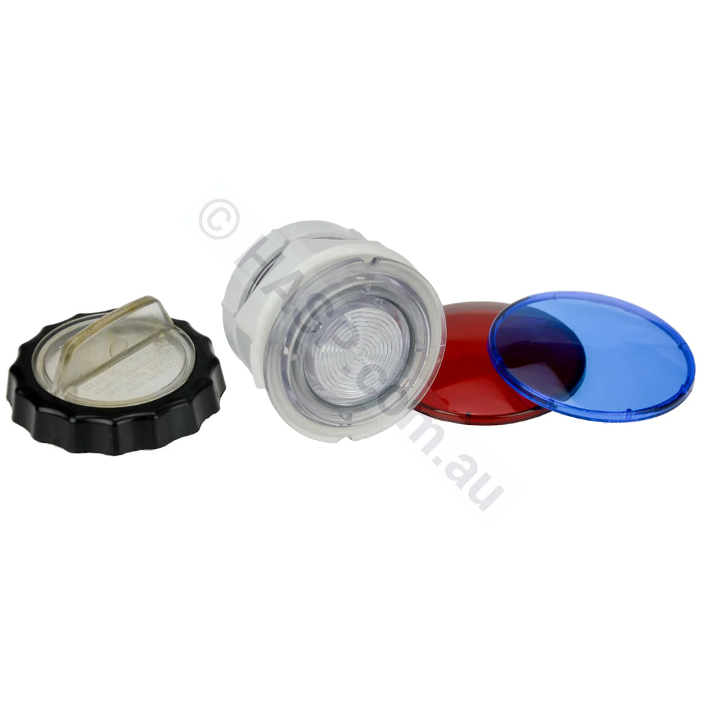 Supplied with red/blue coloured clip on lenses. (not used if LED lamp is fitted.)