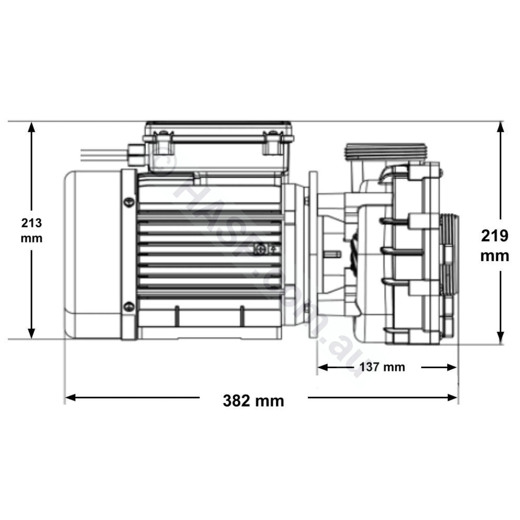 No Longer Sold or Recommended - Gecko's Maelstrom MS-1 single-speed spa pumps are being sold as 3HP and labelled as 4.2HP, but as they are only a 1700W pump, they are actually closer to 2.3HP in reality.