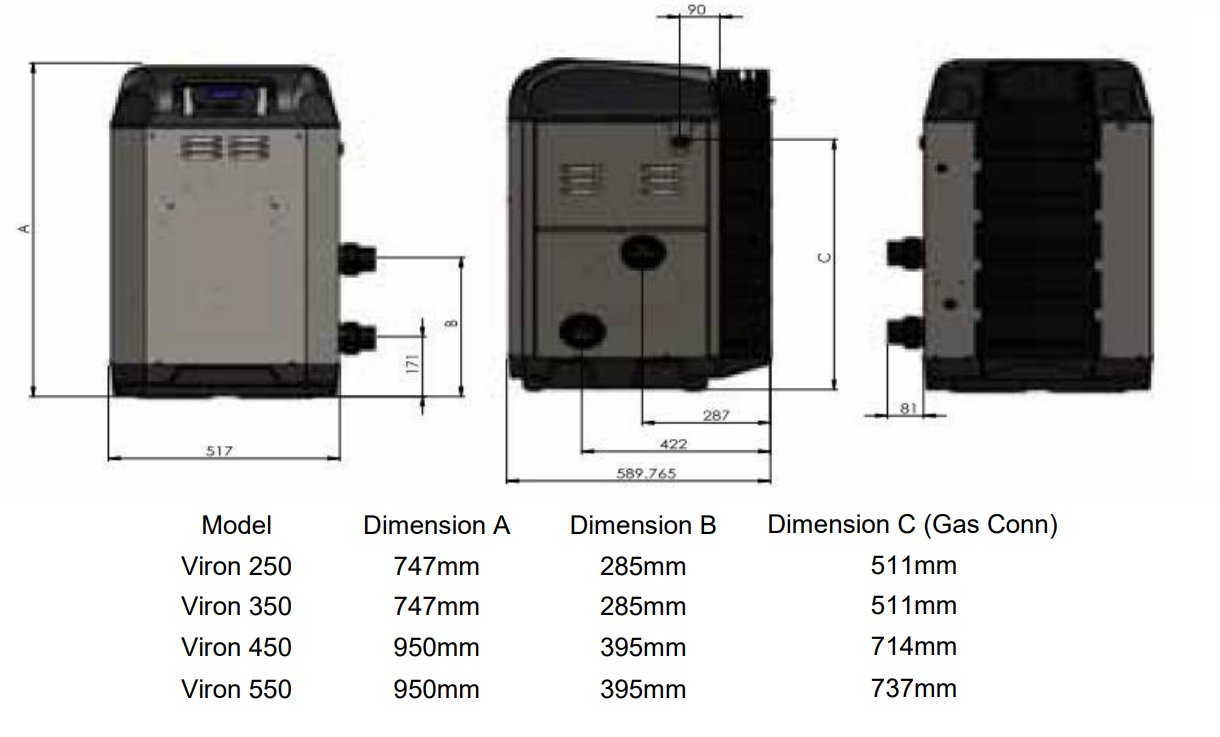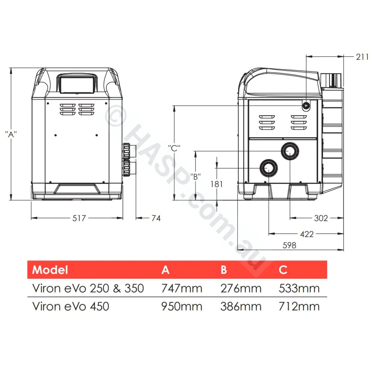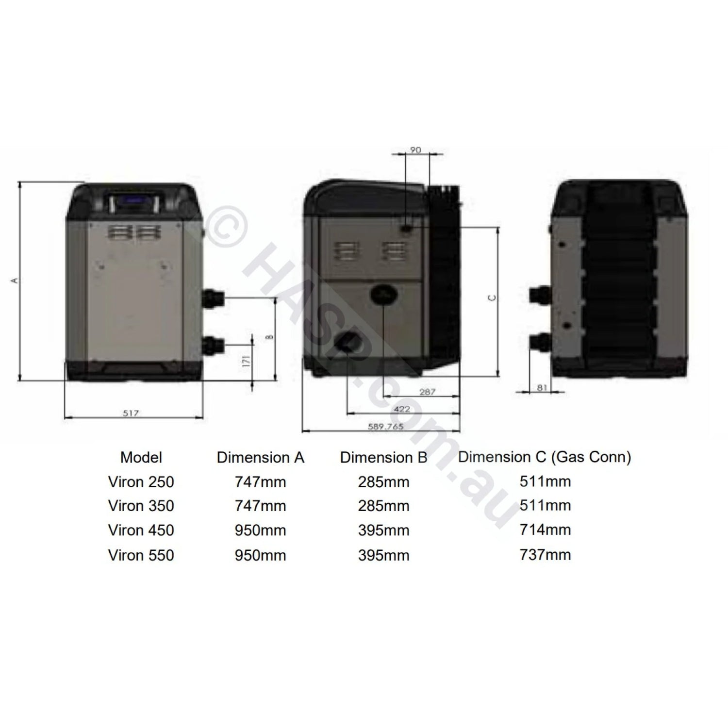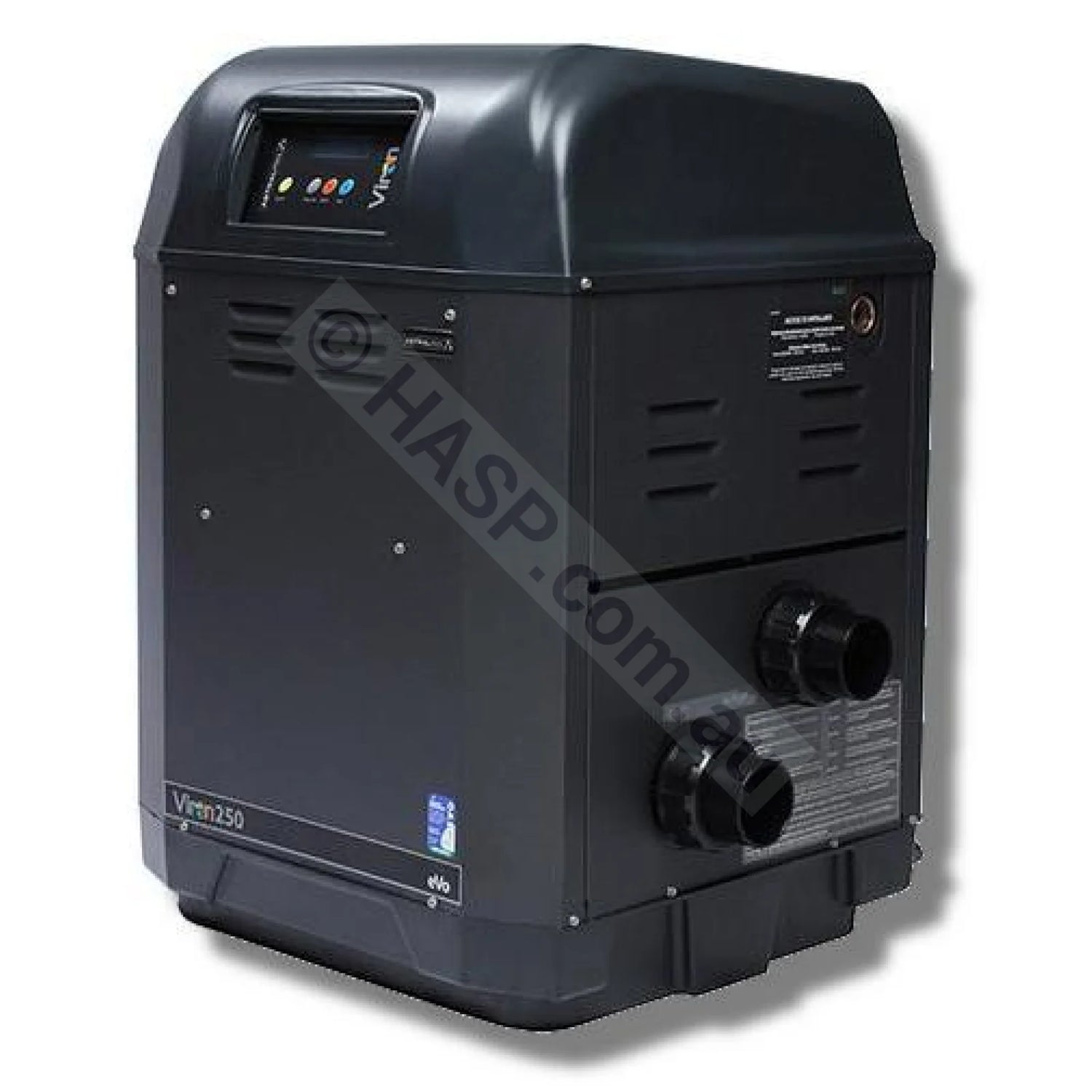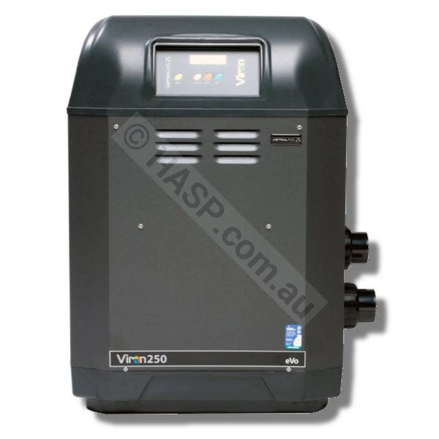 Hurlcon Astralpool Viron eVo 250 gas pool heaters. This is the latest eVo version, which have a completely different combustion & ignition system to the old Viron gas heaters. The only gas pool and spa heater that can reach up to 97% efficiency.