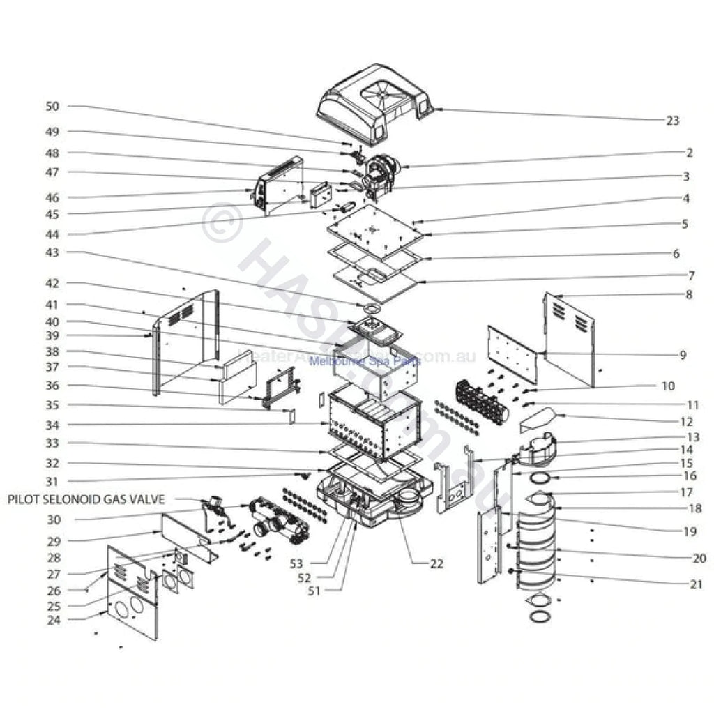 F7 may be caused by a faulty float level switch on any Hurlcon Astralpool Viron gas pool heater. This is an OEM replacement float switch rated for higher temperatures than generic parts. These can be very difficult to remove when corrosion is present.