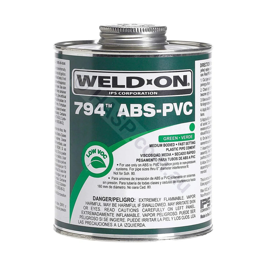 IPS Weldon 10275 Green 794 Medium-Bodied Transition ABS to PVC Plumbing Cement, Fast-Setting, Low-VOC, 1/2 Pint Can with Applicator Cap