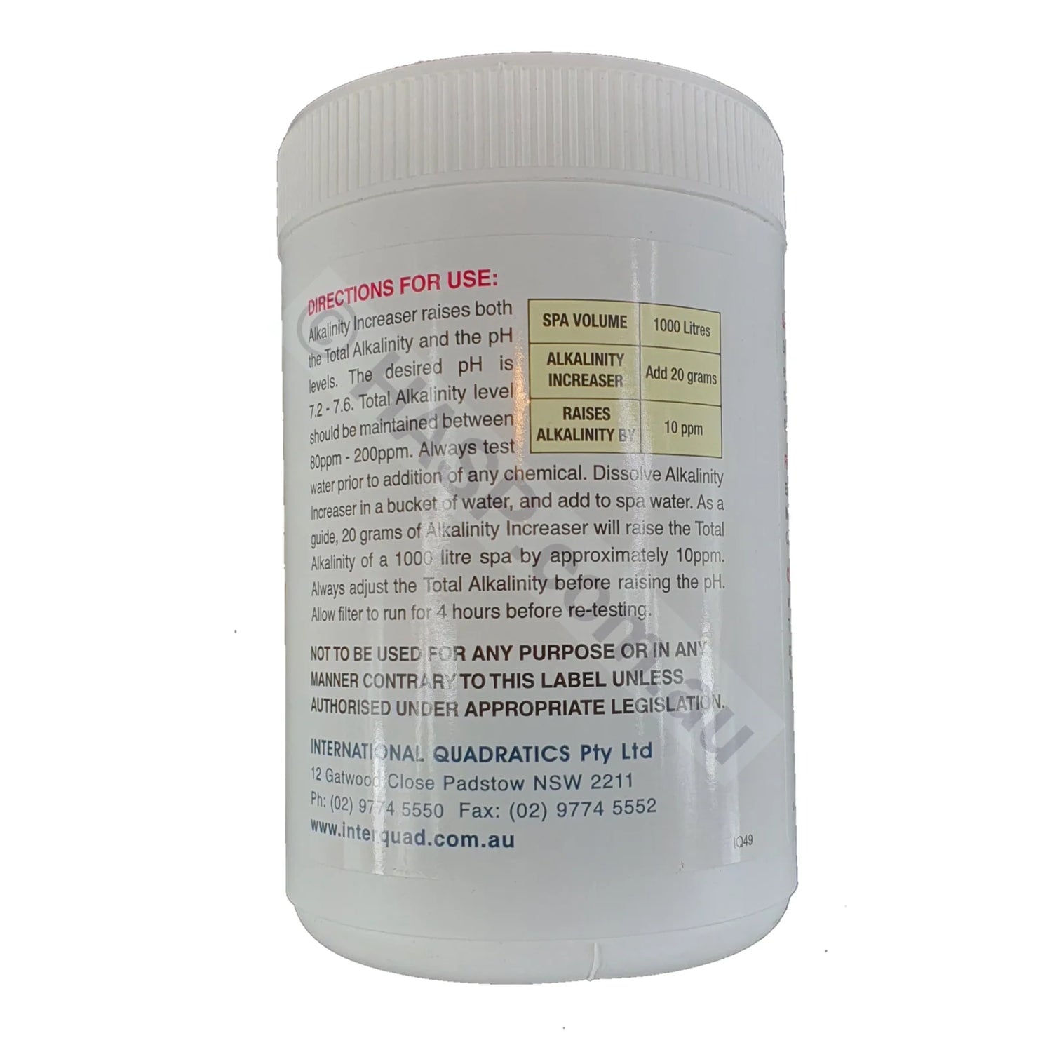 Increases total alkalinity and pH levels in spas. Also known as Sodium Bicarbonate, Buffer, Bicarb. Acts as a pH buffer to prevent extreme pH shifts.