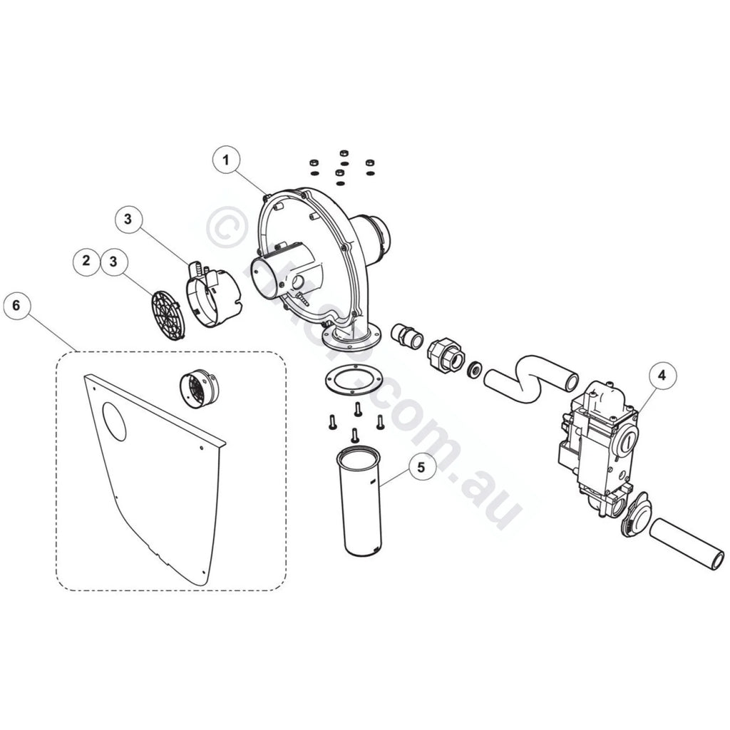 Zodiac JXi / Astralpool IXI Gas Heater Spare Parts - Burner Assembly, Combustion Fan, Gas Valve Parts.