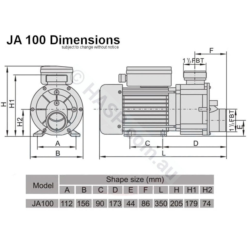 The JA-100 is a high-performance circulation pump from LX Whirlpool, commonly used as a replacement for several older models including the DXD310, LX EA350, LX TDA100, and DH 1.0.