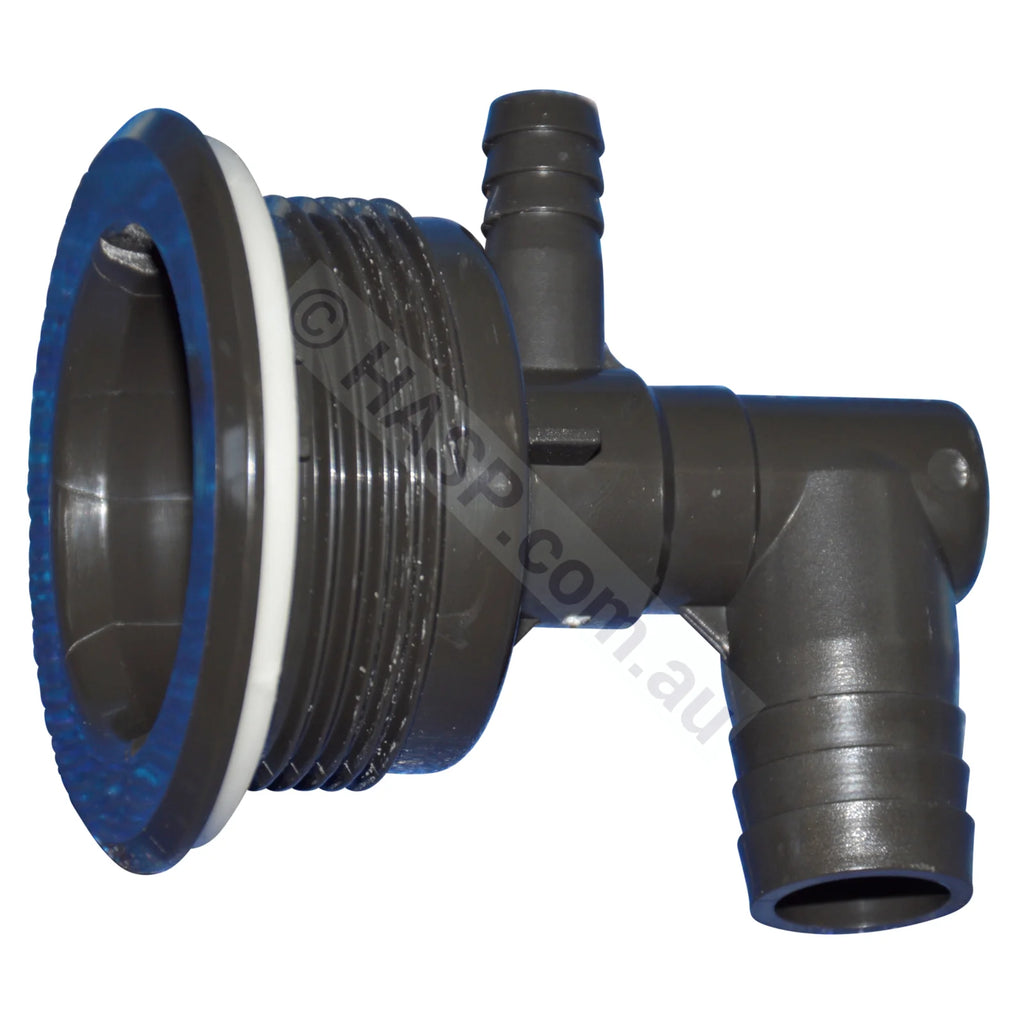 Mini Hurricane Jet Body 3/4" jet barb x 3/8" air tube barb. 69-70mm diameter face. These were originally a lighter grey. Now are all a darker charcoal gray. 54mm hole size