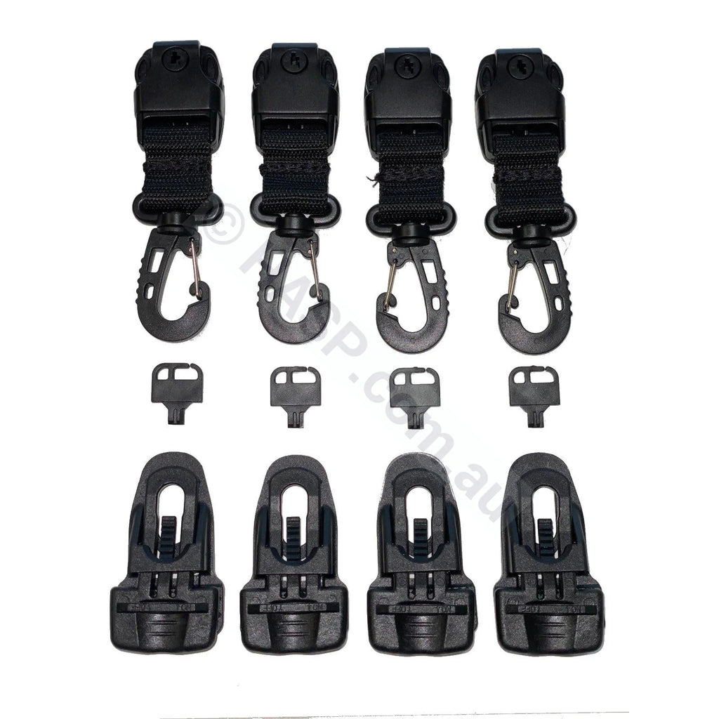 Easily replace spa cover clips with these clip on Cover Safe Clips. Simply clip the new clips onto the cover skirt. One pack contains 4 cover clips and two keys.