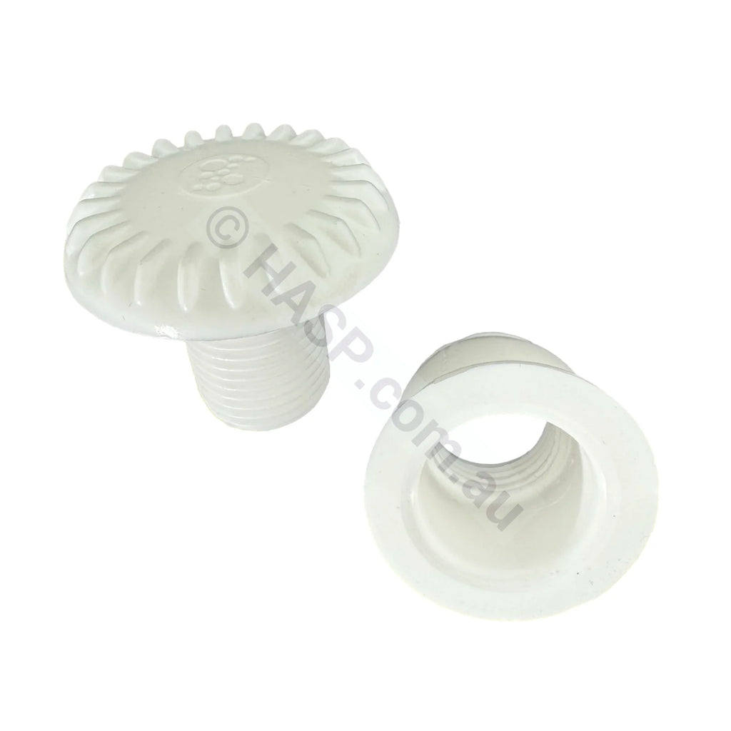 25mm / 1" slip fit air venturi control valve designed for concrete in-ground applications. Simply push into 25mm Cl9 pipe (pipe should be approx 29-31mm ID). Also called a Waterco Self Set Air control.