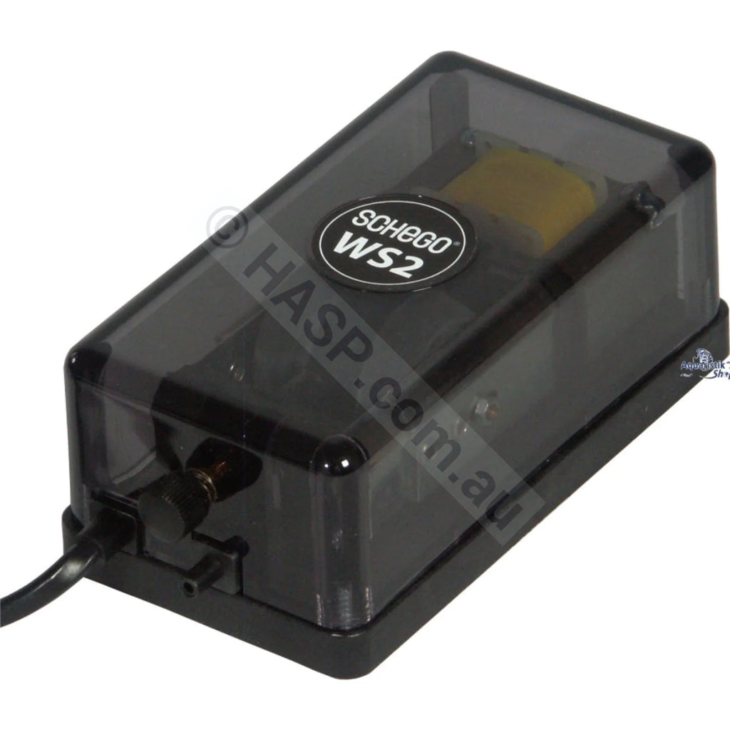 Schego Air Pump WS2. Can be fitted to Clearwater, Monarch, BO3, Aquasun, and many other Ozonators. Older ozone generators sometimes had a built-in air pump. None of the current manufacturers in Australia have this anymore. This can be retrofitted to many of the new ozone generators, such as the BO3