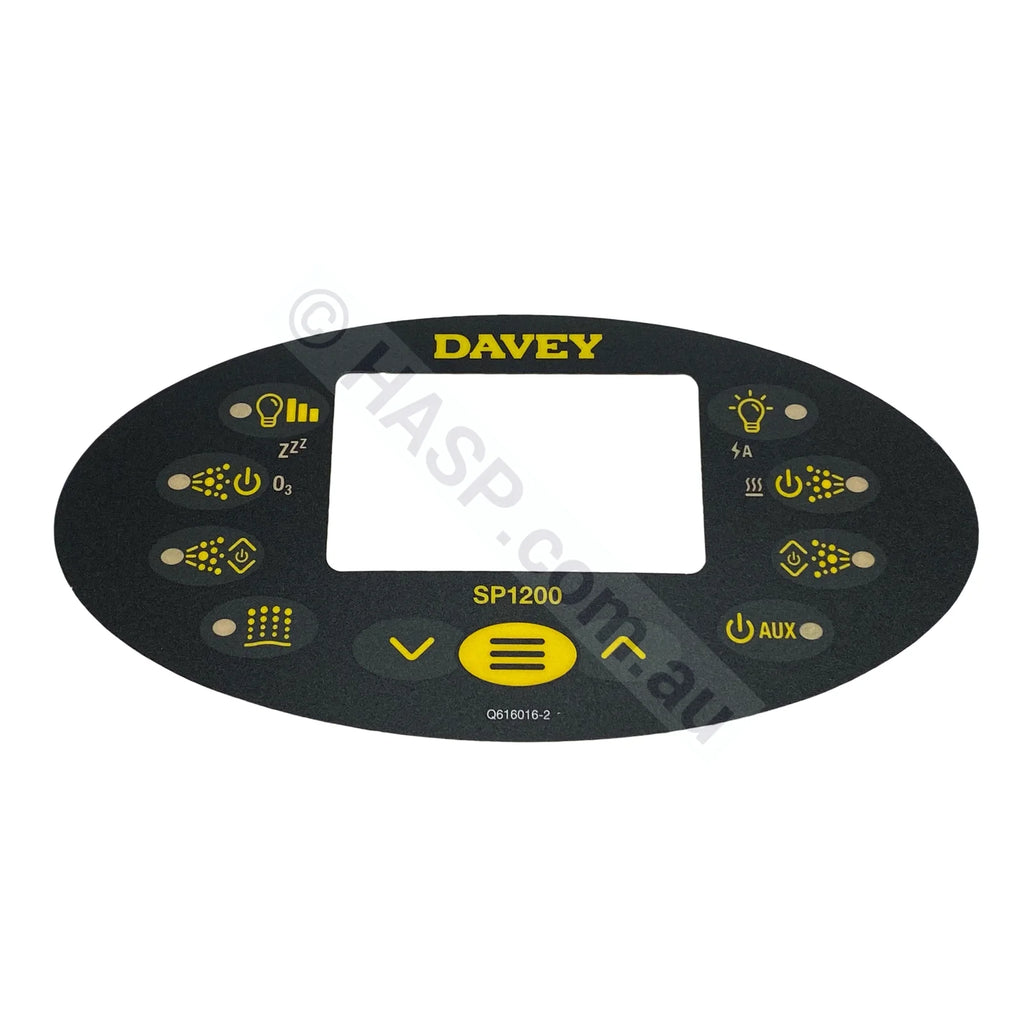 Davey Spa-Quip Spa Power 1200 touchpad Overlay. These were originally gray, but are now black and yellow. The gray version is shown as the first picture due to its past popularity. Gray version is no longer available since around 2022.