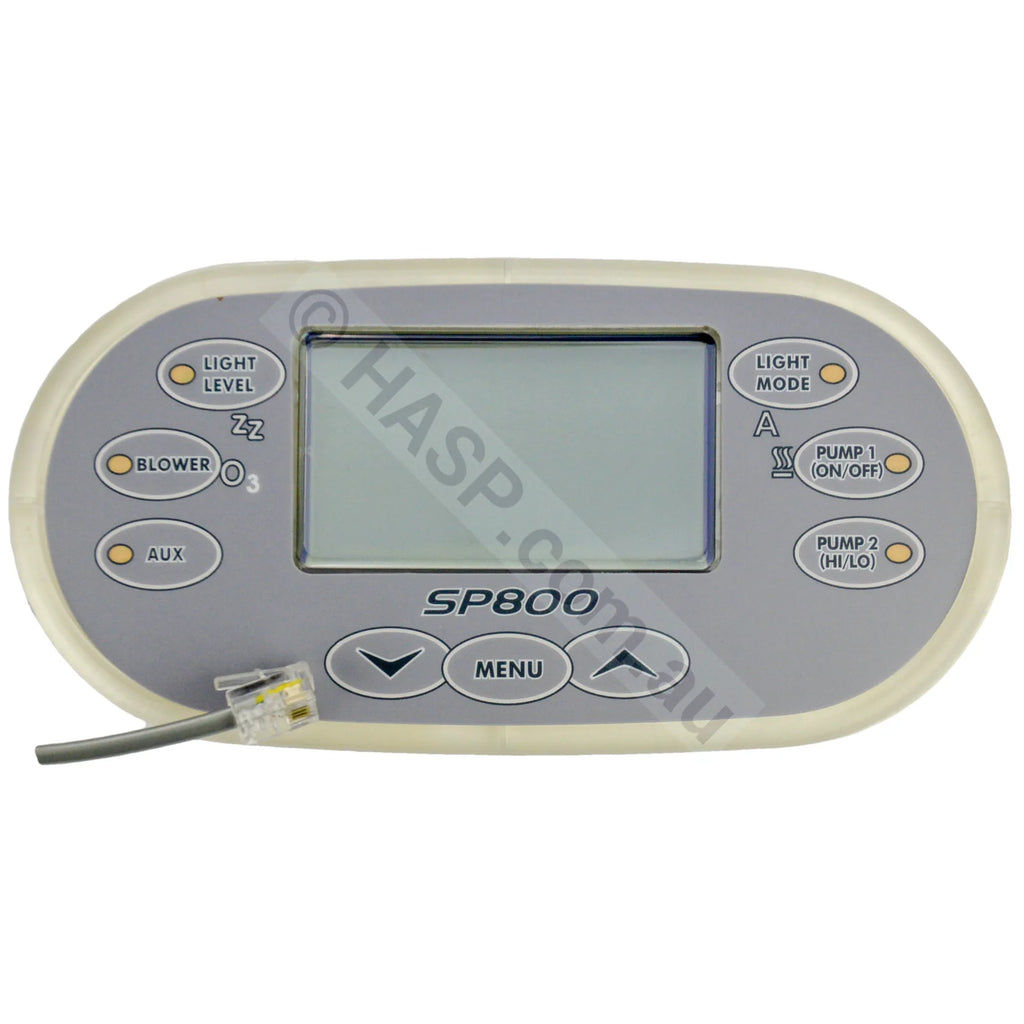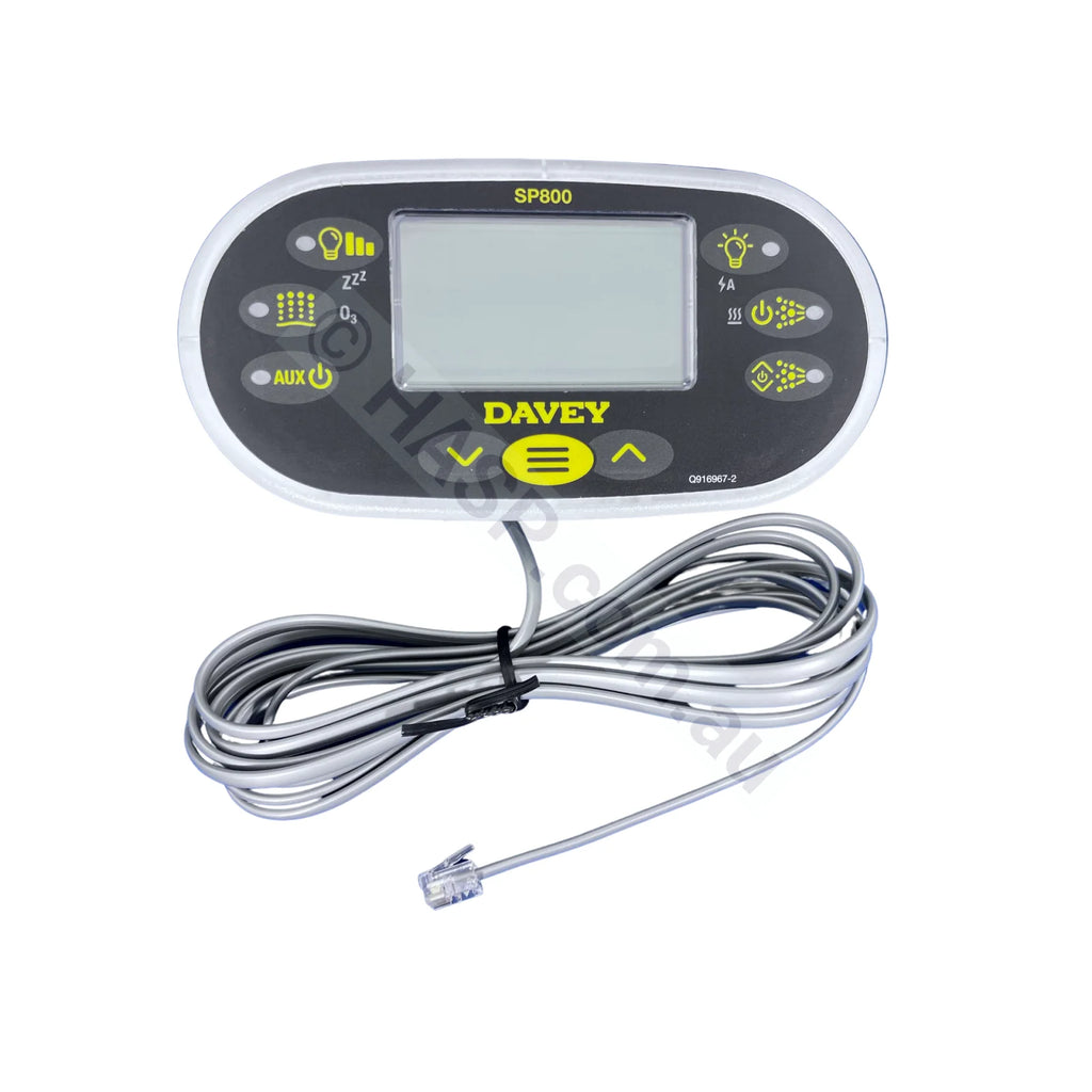 Davey Spa-Quip Spa Power SP 800 racetrack style touchpad / control pad / keypad. Race track oval shape. SP800 was also sold as a Tech 980 using a different overlay. These were re-branded and used by Sapphire, Heritage, Jaden, Pacific, Maax, Monarch, Lanark, Endless™ and other spa brands. Don't confuse with normal Oval SP800 touchpad (although interchangeable)