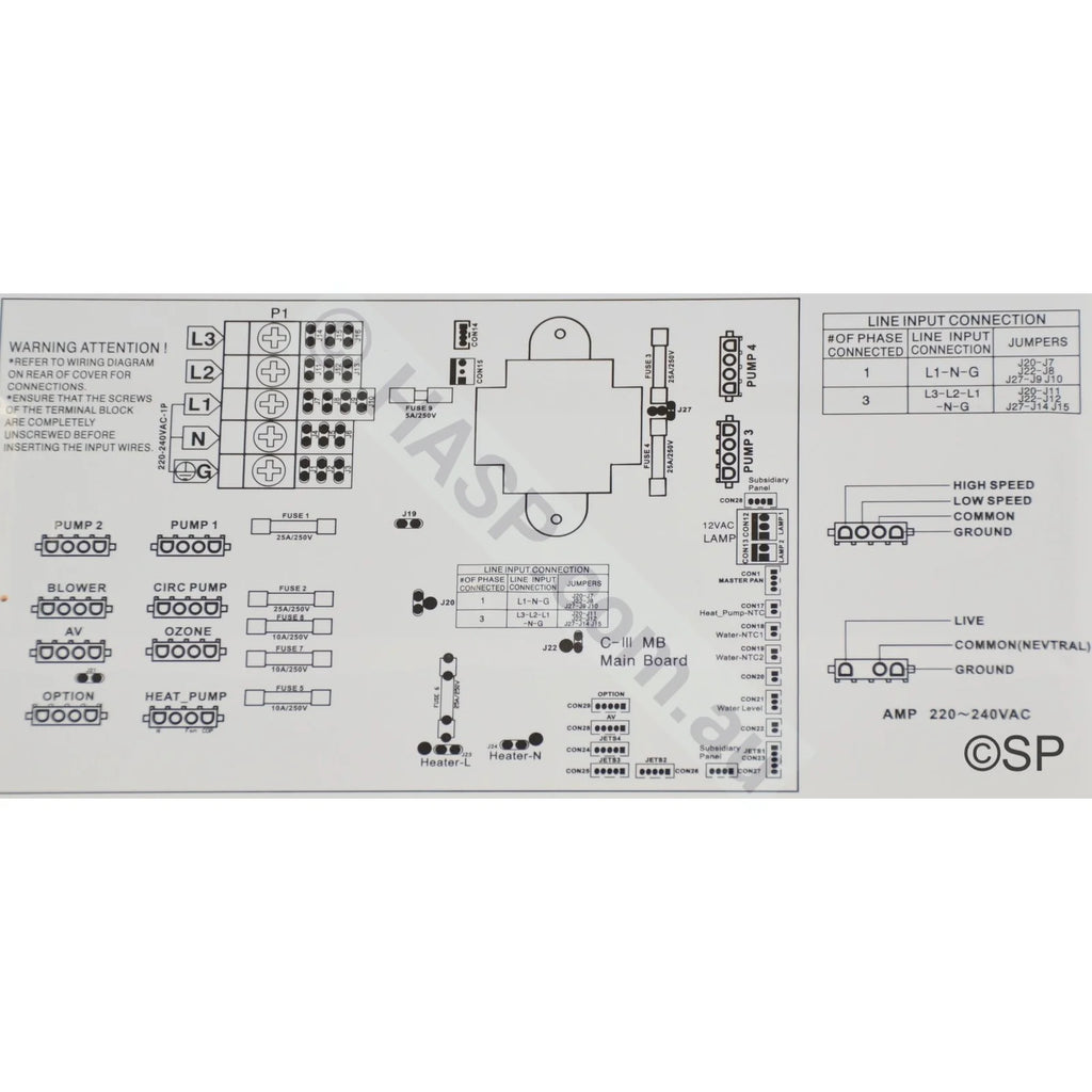 Spa-Tech C-III controller with 2kw or 3kw heater. Used on Chinese imported spas from Oasis Leisure Products from 2017. Can retrofit Spa-Tech C-II control boxes also.