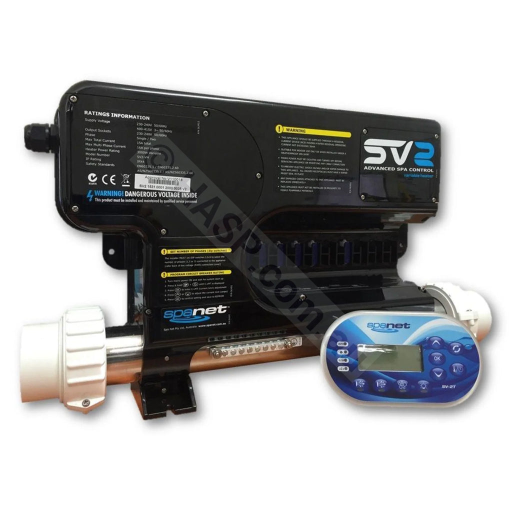 SpaNET SV2 Spa Control System and Spare Parts. The SpaNET PowerSMART SV2 Spa control system sets a new standard in equipment levels for small to medium sized spas. Designed to operated 1 or 2 pump* spas, the SV2 features Smart Variable Heater technology with Dynamic Thermal Tuning. SV2 Controls are supplied ready-to-connect to SV Series Heat Pumps and the SV Smartlink Wifi.