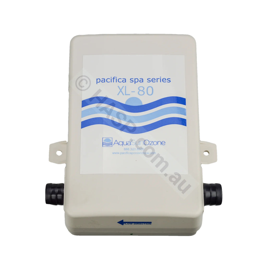 XL80 Ozonator. This is a high-output ozone generator, perfect for replacing any brand. Should be replaced every 3-5 years. Corona Discharge Ozone Generator. 50-100mg O3 per hour. Common on Sapphire Spas, Sundance Spas, and others. Have been re-branded as other Ozone generators