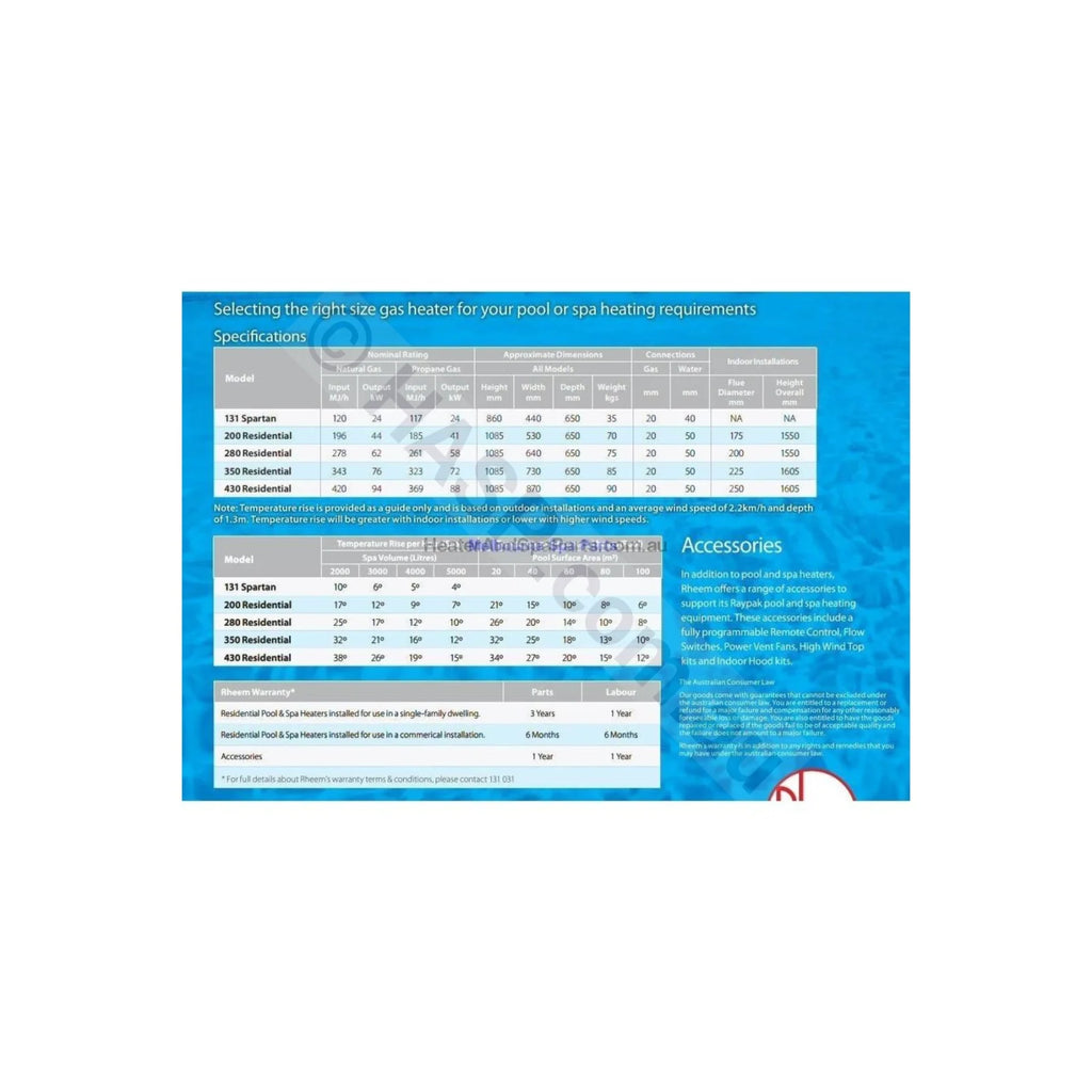- We do not recommend the newer Raypak 280, 350, 430 gas heaters be installed where 40mm plumbing is used. Flow characteristics have changed in the newer heaters.