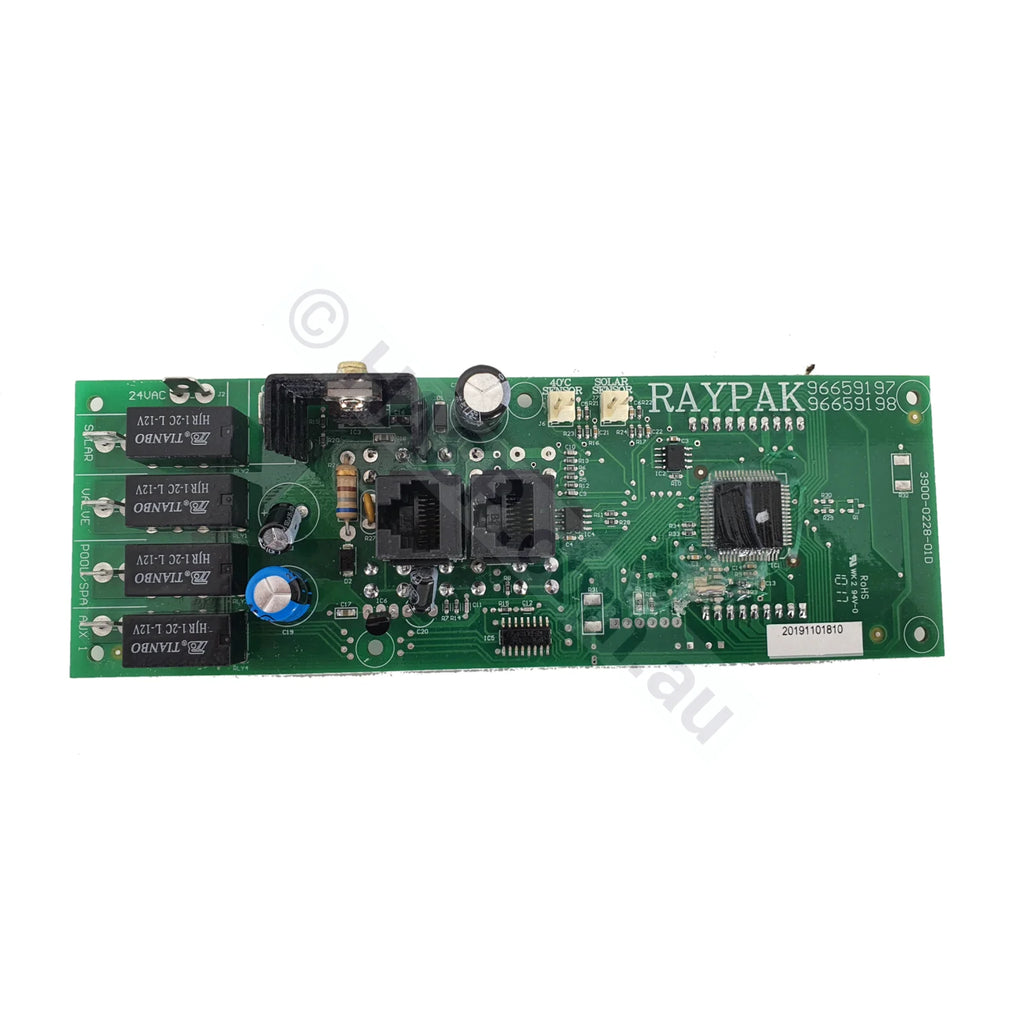 PCB Thermostat circuit boat for current Raypak Gas pool heaters with grey facia & label as per picture below. Does not suit Raypak heaters with the Black Label PCB.