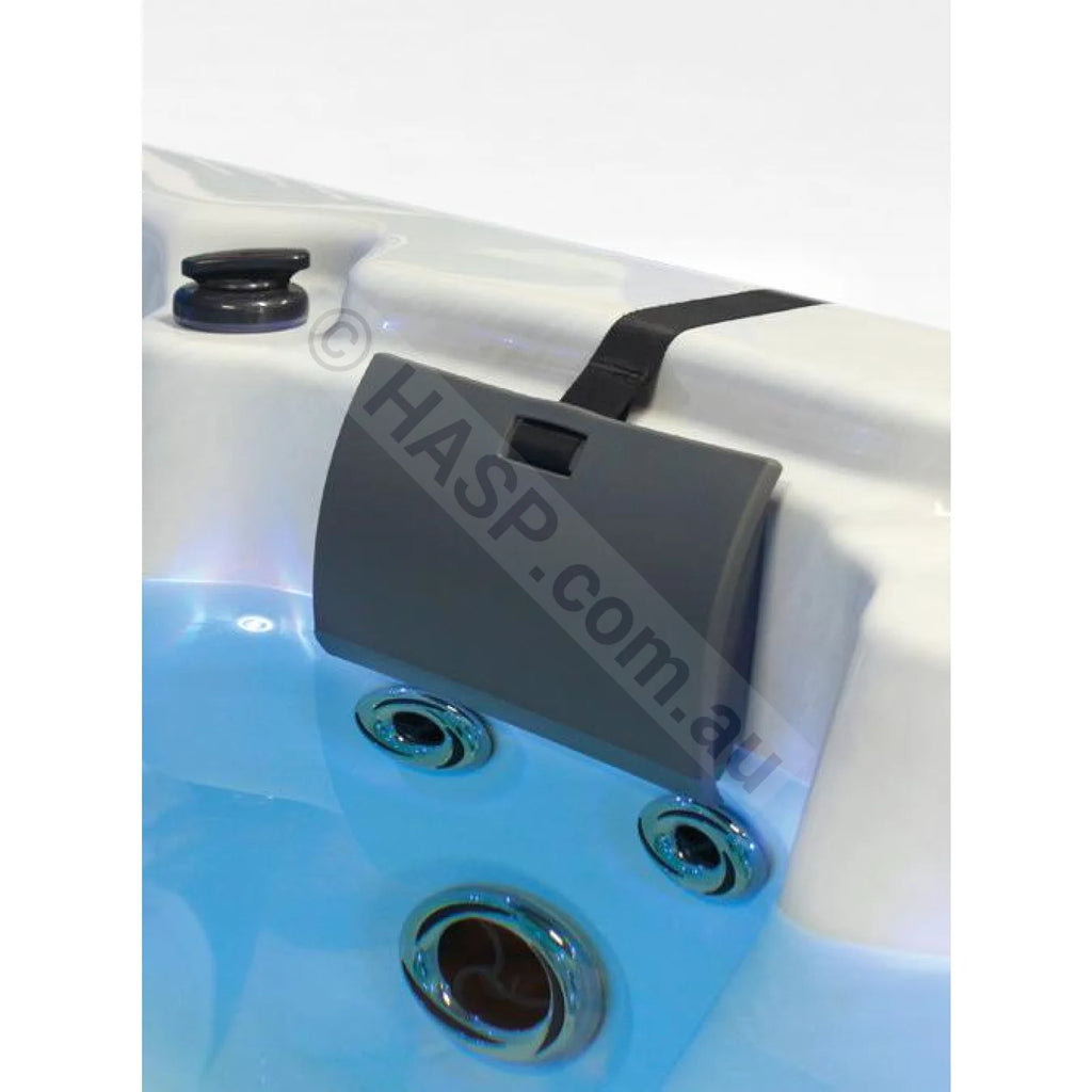 Semi Universal headrest pillow with counterweight. Suitable for many Monarch, Signature, Spa Industries, Lanark, Heritage, Sapphire, Designer, Cyclone and all other spas. Replaces many obsolete headrest pillows.