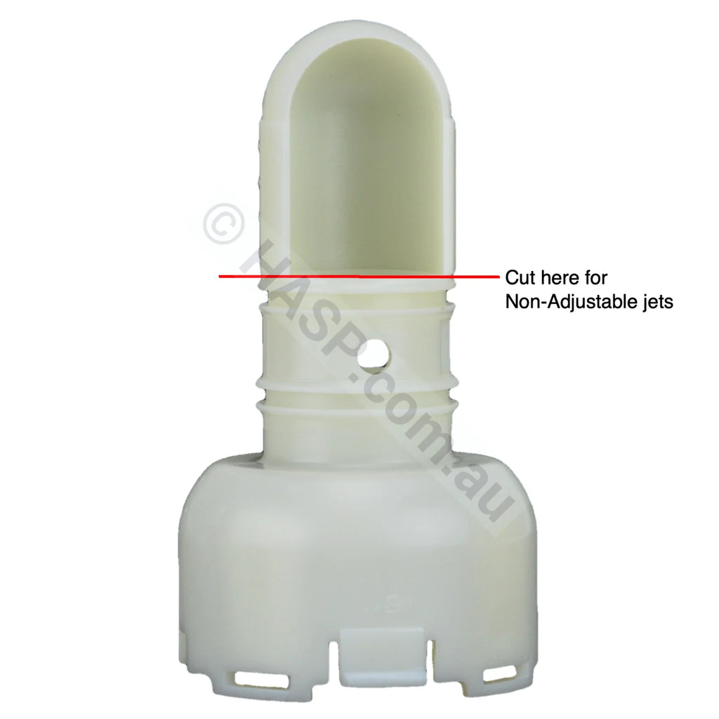 Suits both Adjustable (as supplied) and Non-Adjustable ( after cutting the rear scoop off) jet barrels in the Whirlpool snap-in style range.