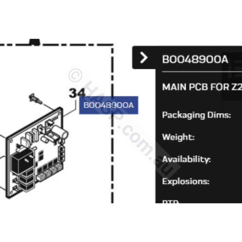 Zodiac Z200 Main PCB - B0048900A - Special Order Item.
