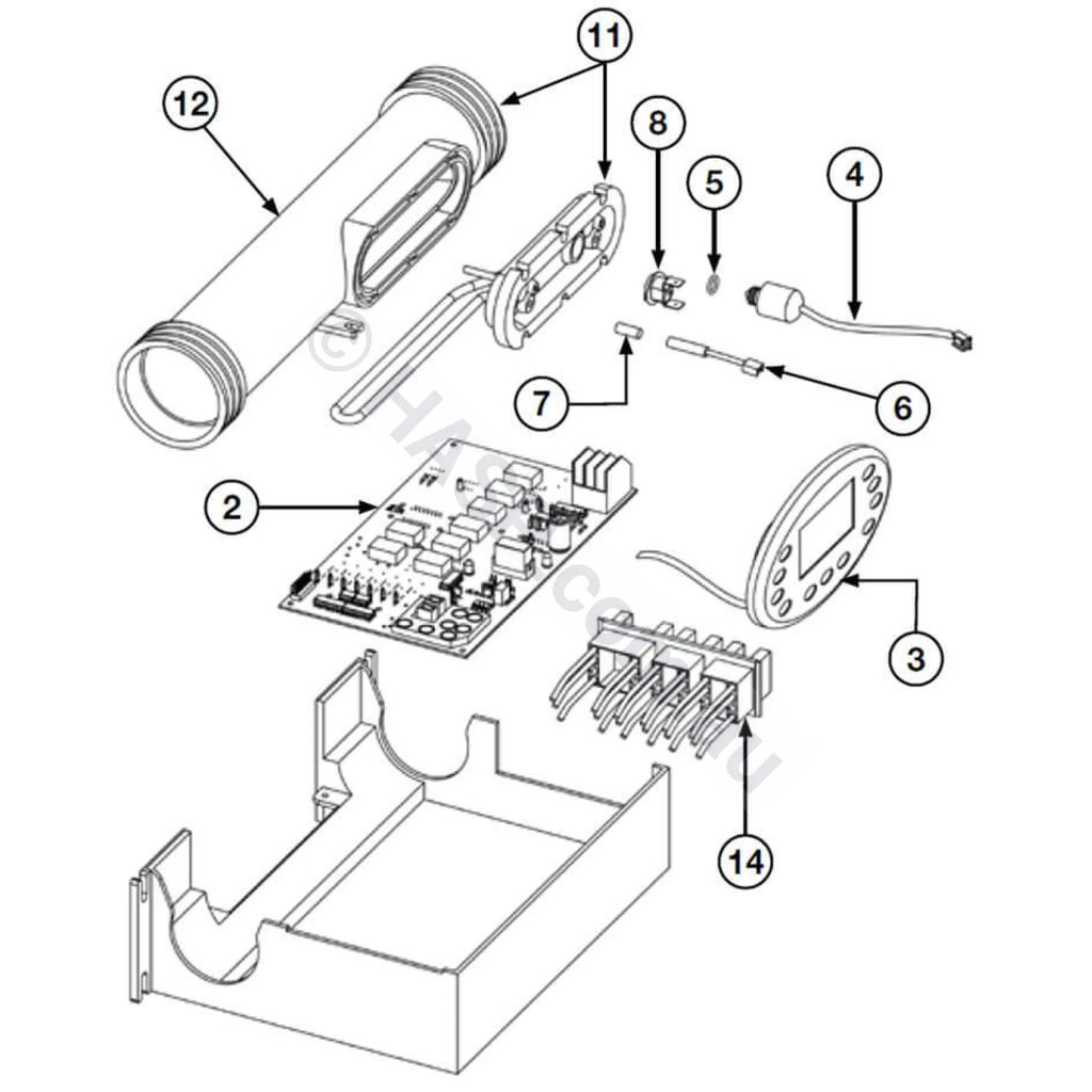 Genuine 3kW Davey SpaQuip Spa Power 600, 601, 800 3000W heater element aka tube assembly. Comes with the newer Titanium element since late 2015, which retrofits the older obsolete Teflon-coated elements and flat brass bulkhead top. Newer version is more sturdy than the older type. Comes with new klixon overtemp sensor, temperature sensor, and optical water sensor.