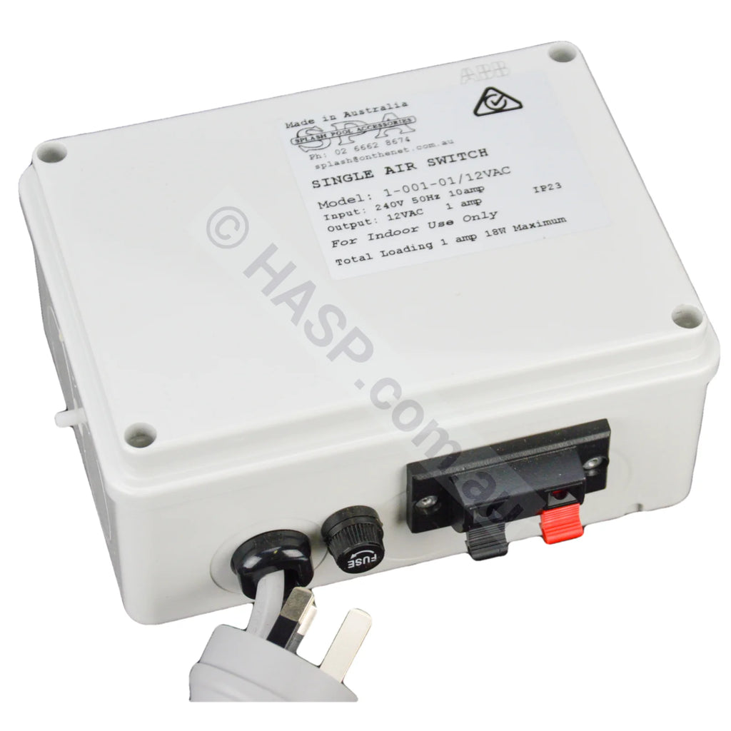 Single Airswitch for the control of 12v AC 2 wire incandescant or LED lighting. Airswitch and light transformer all in one.