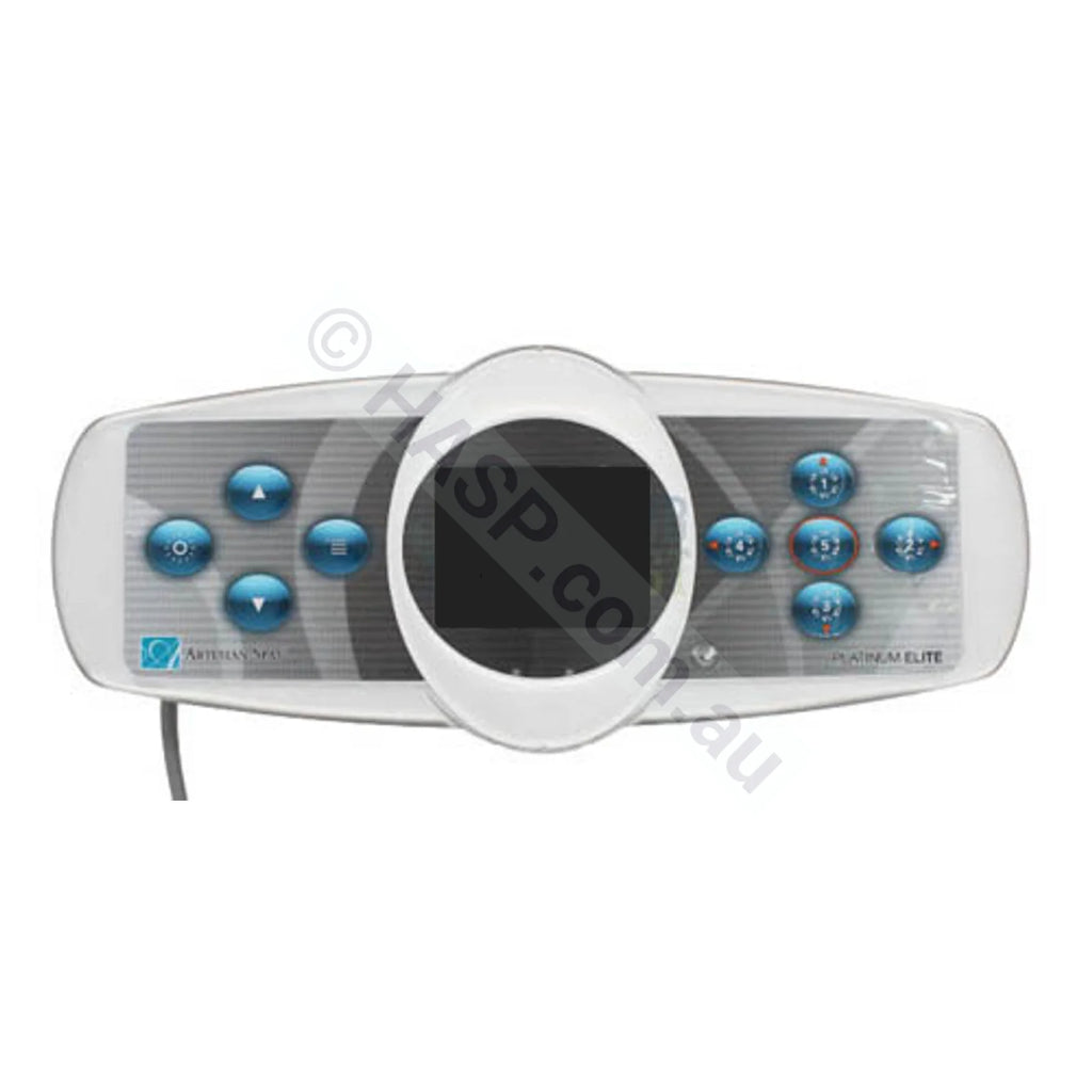 Artesian Spas 9 button colour screen spa control pad (touchpad). These are superseded by the TP800 listed here. May have the words Platinum Elite on it and a Balboa part number 24098