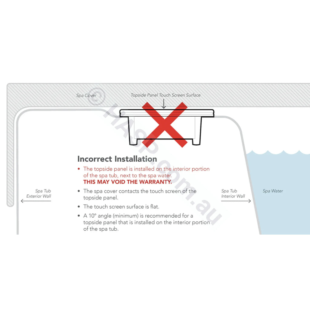To ensure longevity and proper operation, do not install in areas exposed to moisture or where excess pressure may be applied to the screen. Avoid positioning near spa steps or where someone might stand or fall onto the touchpad. Always ensure the unit is not in contact with the spa cover when closed.