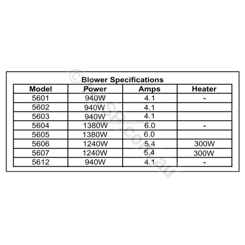 - All Davey SpaQuip 940W blowers now use a new more-efficient 750W motor as of 2020