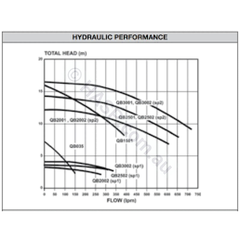 Davey QB series 1 speed Spa Jet Booster Pumps. This is a 2HP, 1500W pump with 50mm fittings. Max Flow Rate of 620lpm. As of 2023 these pumps come only with 3-pin or Overmoulded AMP plugs.