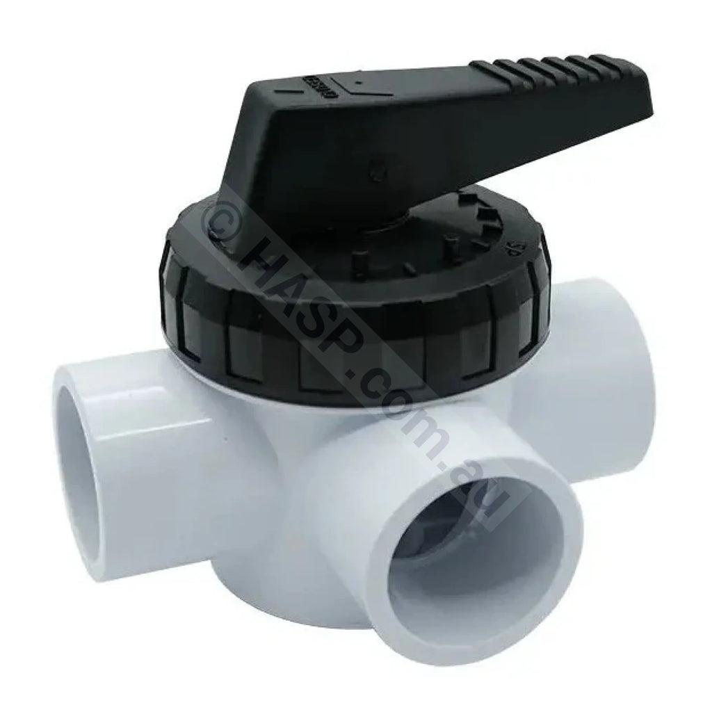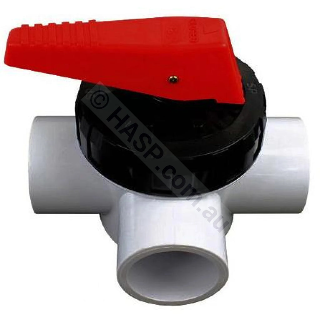 SP PoolQuip Davey Spa-Quip Full Flow 3 way 50mm valve. Valve has Teflon seals for long service life. Originally came with blue, red, or black handles and sometimes a gray top.