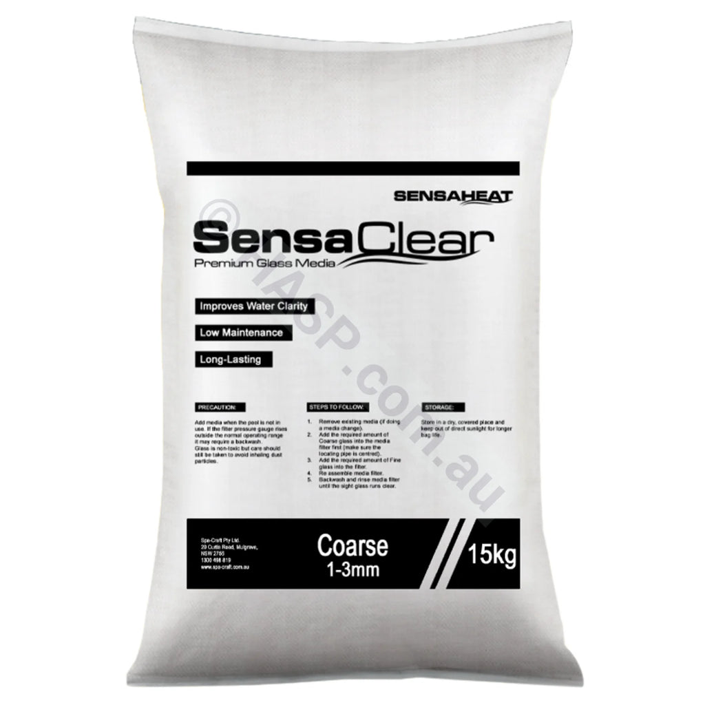 SensaClear Glass Media - Coarse Grade - by Australia's largest OEM spa parts supplier. Comes in 15kg bags.