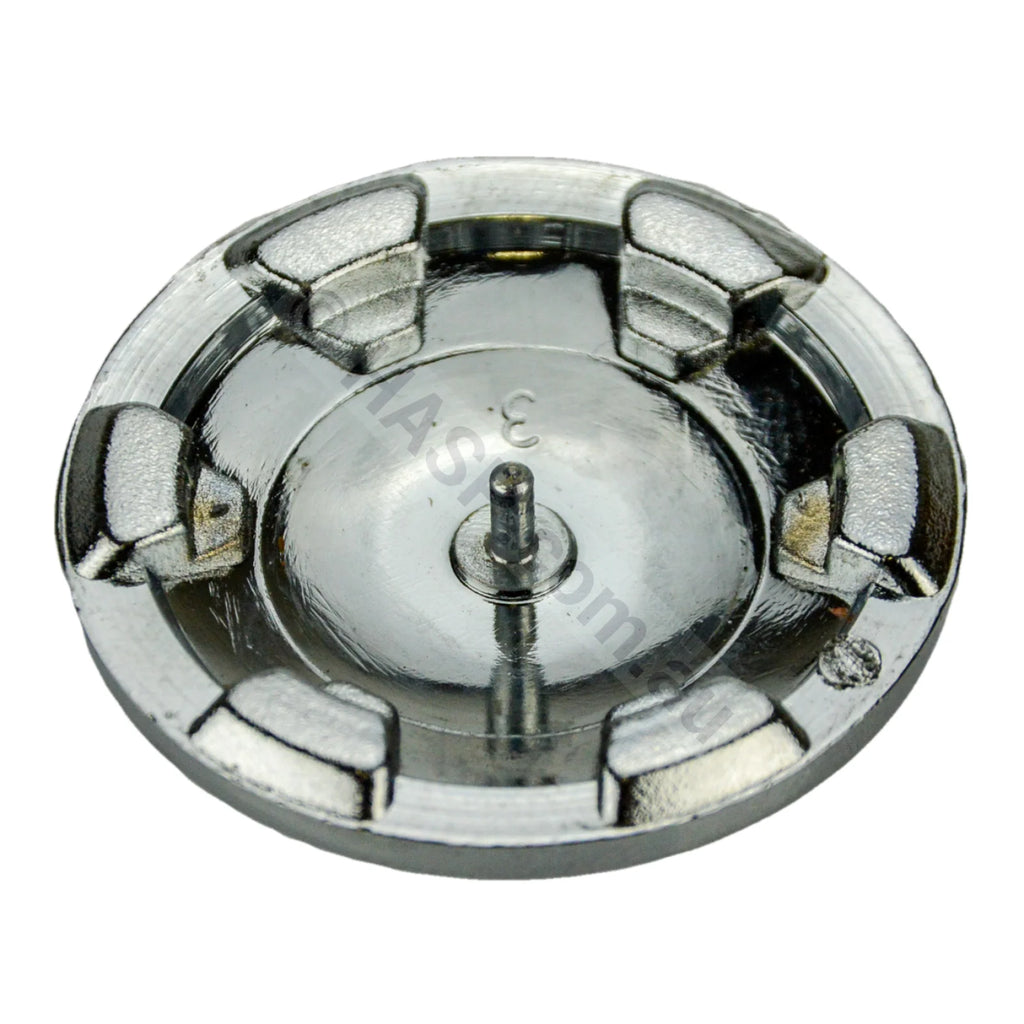 Stylus Air Force bath air injector cap. 30.4mm diameter cap. Originally came in Chrome & White. Brass body has an outside diameter of 21.5mm. These air injectors were made by Hydrabaths and were discontinued in 2008. Stylus sold all remaining stock in 2010. No one has any of the original parts remaining.