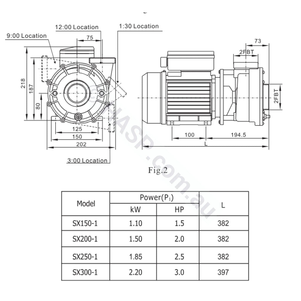 SX300 - 3HP - 1-Speed Jet Pump - Universal Spa Booster Pump - Spatex